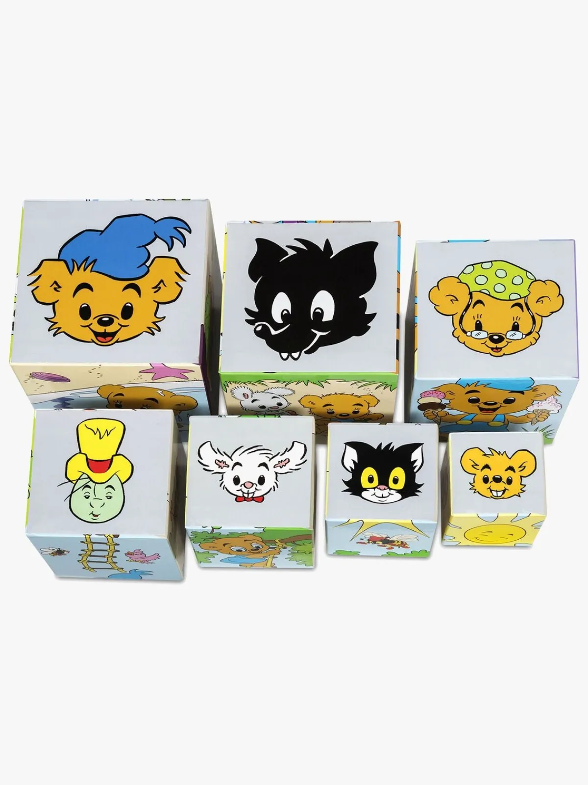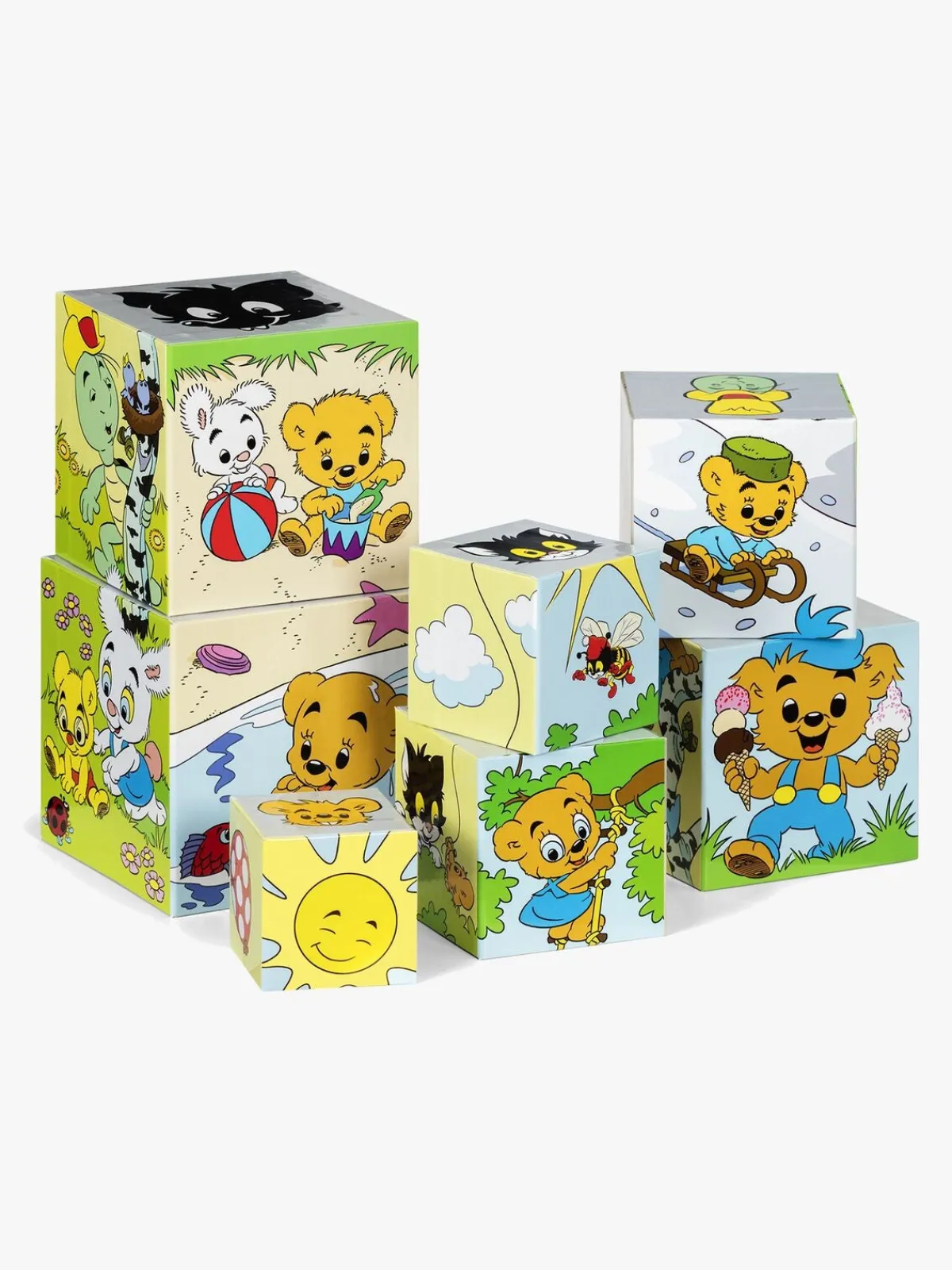 De syv klodser passer ind i hinanden, så barnet kan lære noget om størrelsesforhold. Når alle klodserne er stablede ovenpå hinanden måler tårnet 64 cm.