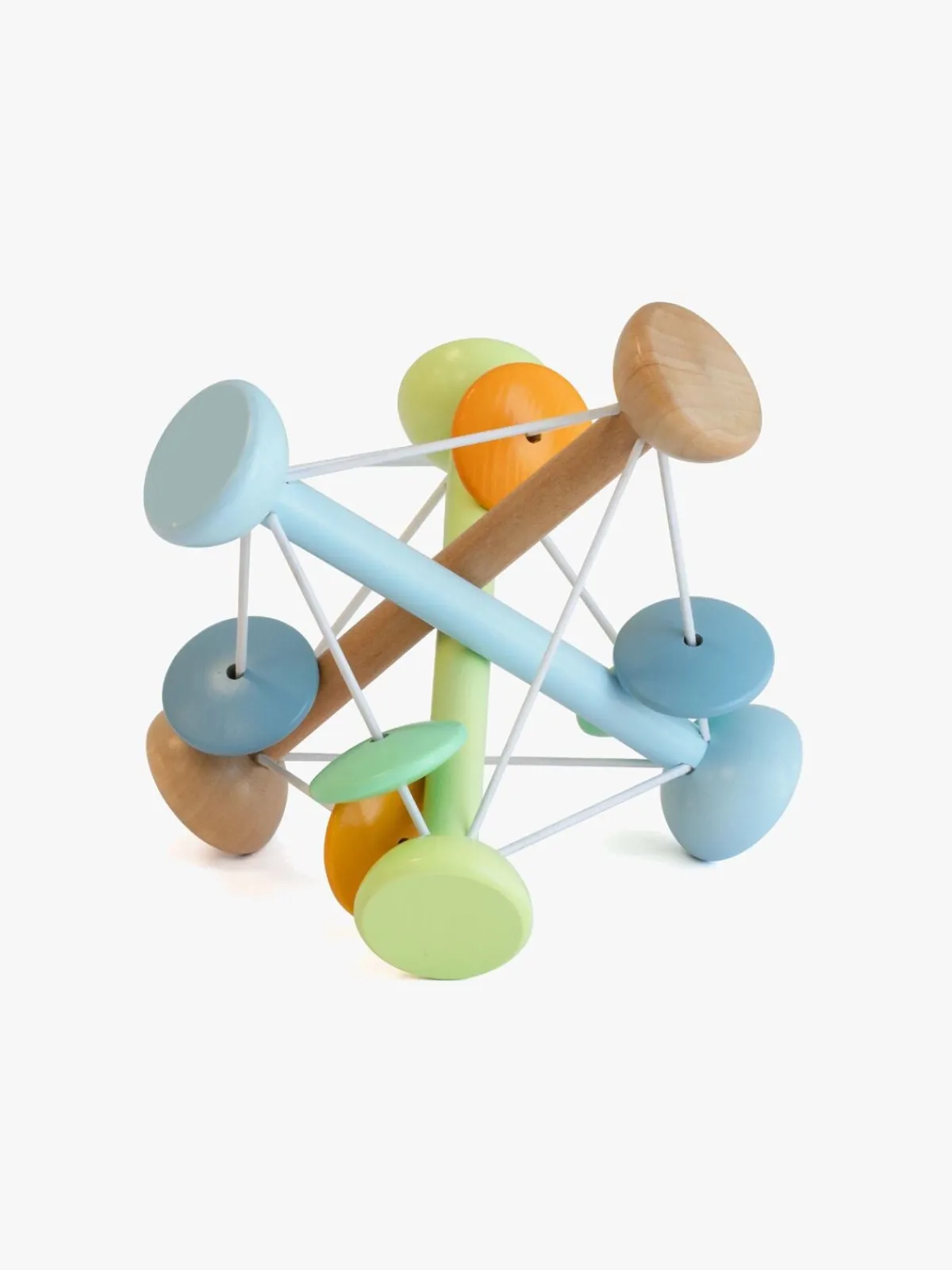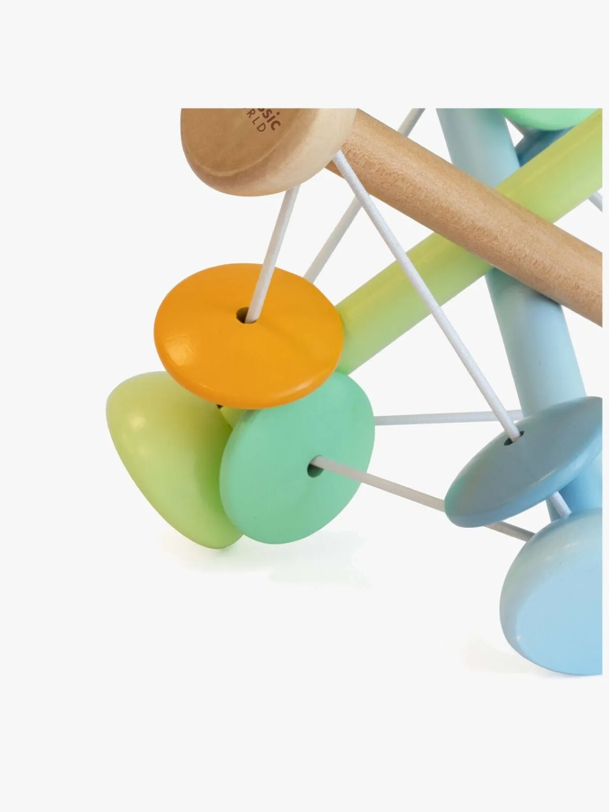– Ranglen er nem at holde fast i med små hænder og laver bløde raslelyde, når dit barn ryster den.