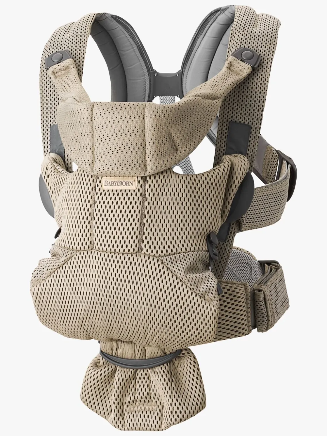 Bæreselen er fremstillet af et avanceret 3D-netstof i tre lag og i stedet for fyld, holder bæreselen sig varm med et mellemlag af tråd med en fiber. Dette gør bæreselen stabil og sørger for, at luft kan slippe igennem, så den holder den rigtige temperatur for dit barn.