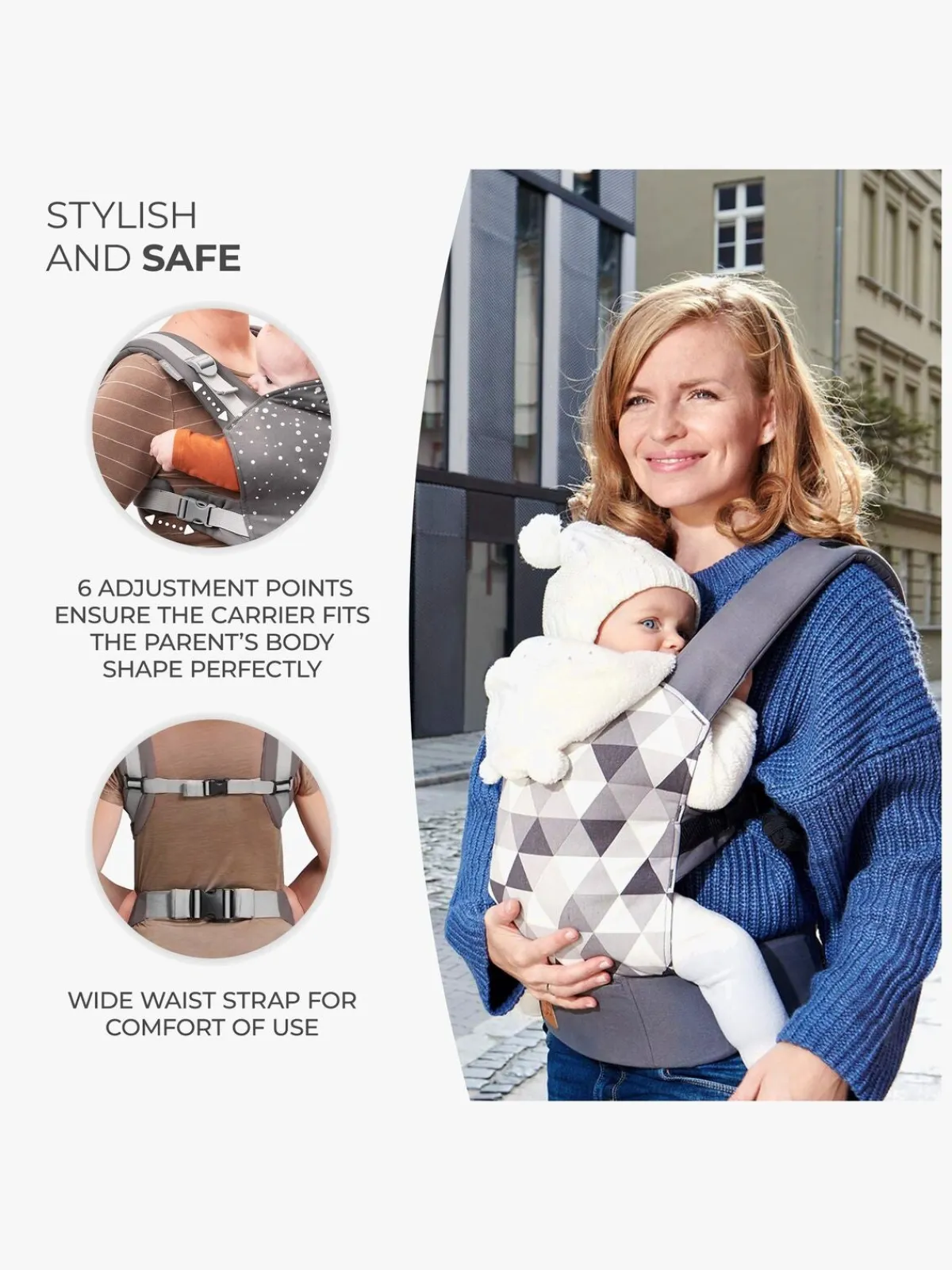 – Fungerer med alle bærepositioner, inklusive fremadvendt.