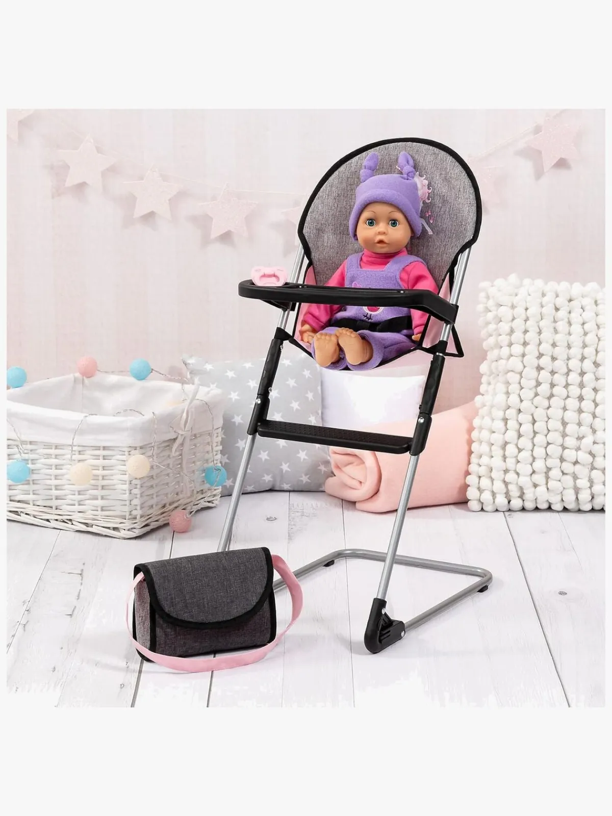 – Indeholder: 1 dukkehøjstol, 1 håndtaske.