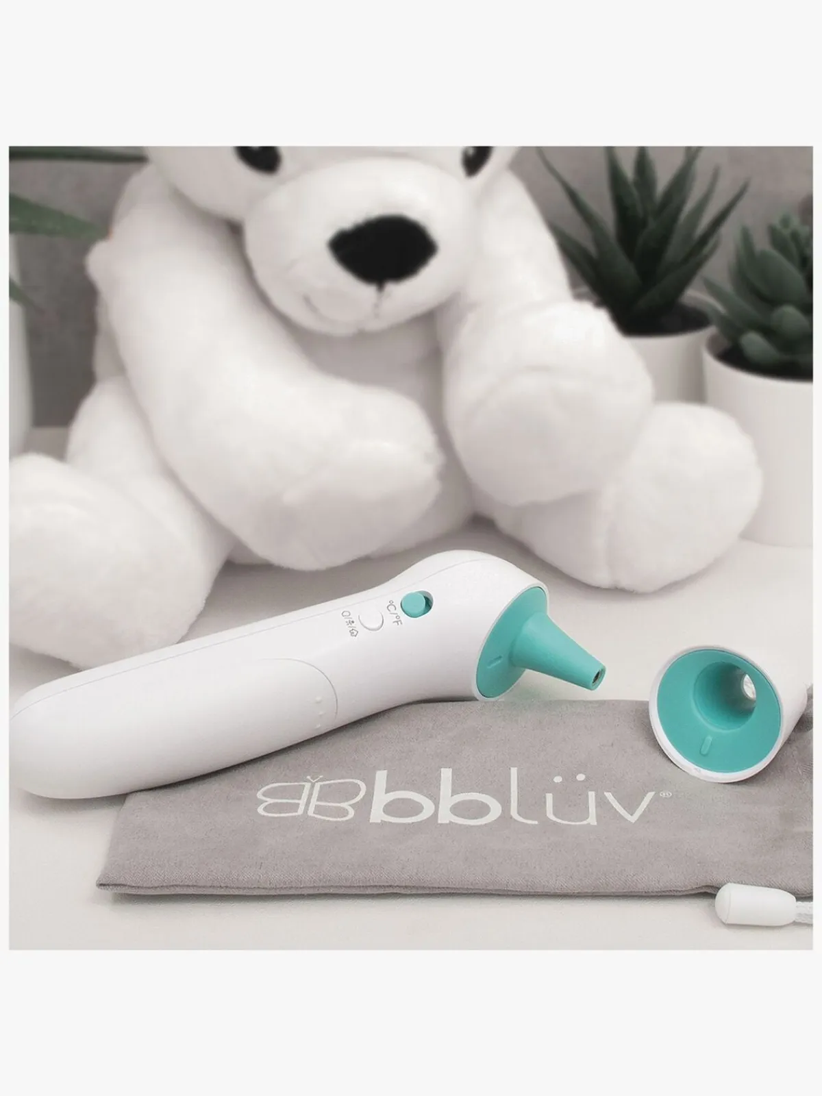 – Måler temperaturen på panden, i armhulen, øret, i en væske eller i et rum.