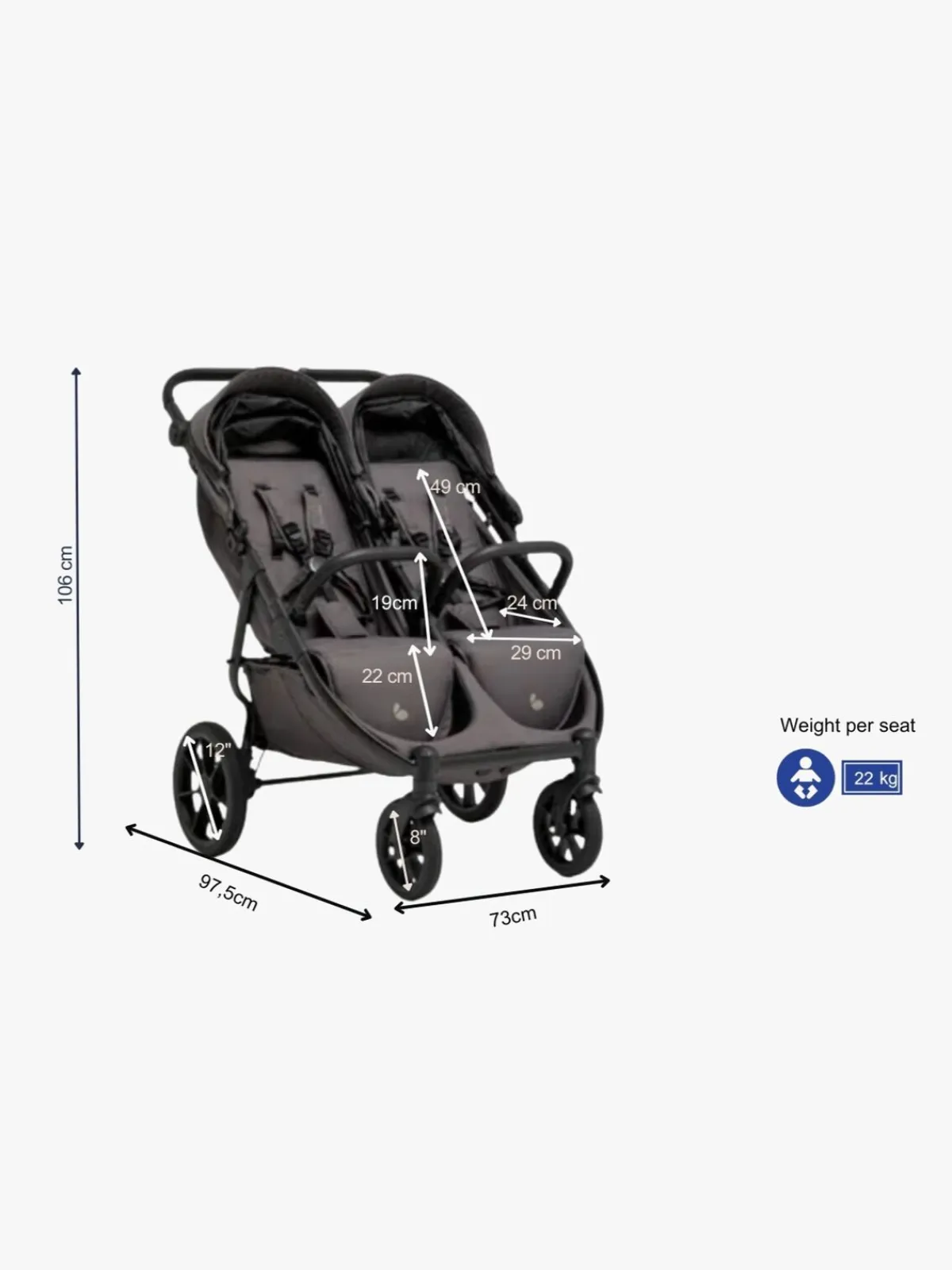 – Maksimal belastning pr. sæde: 22 kg.
