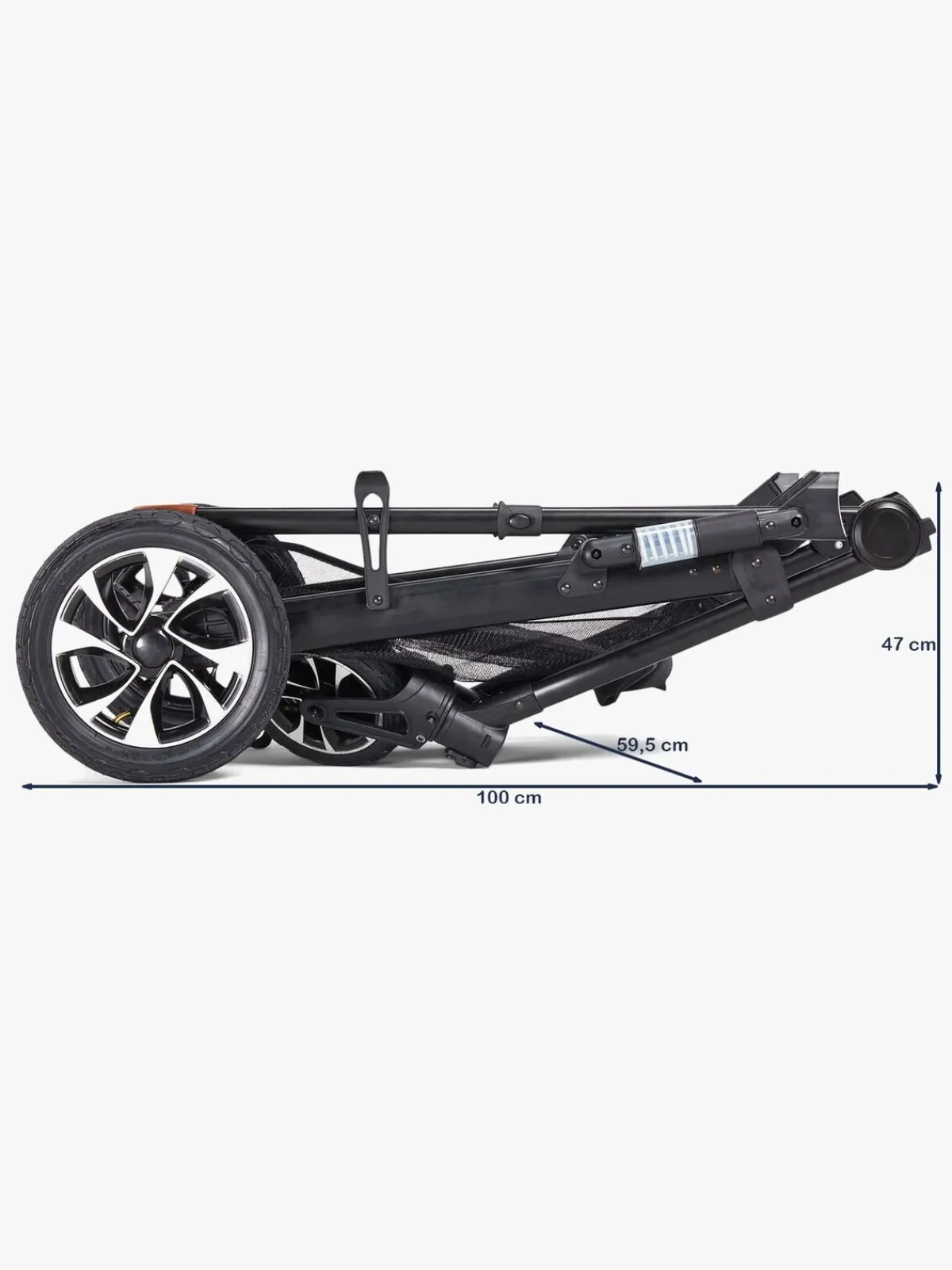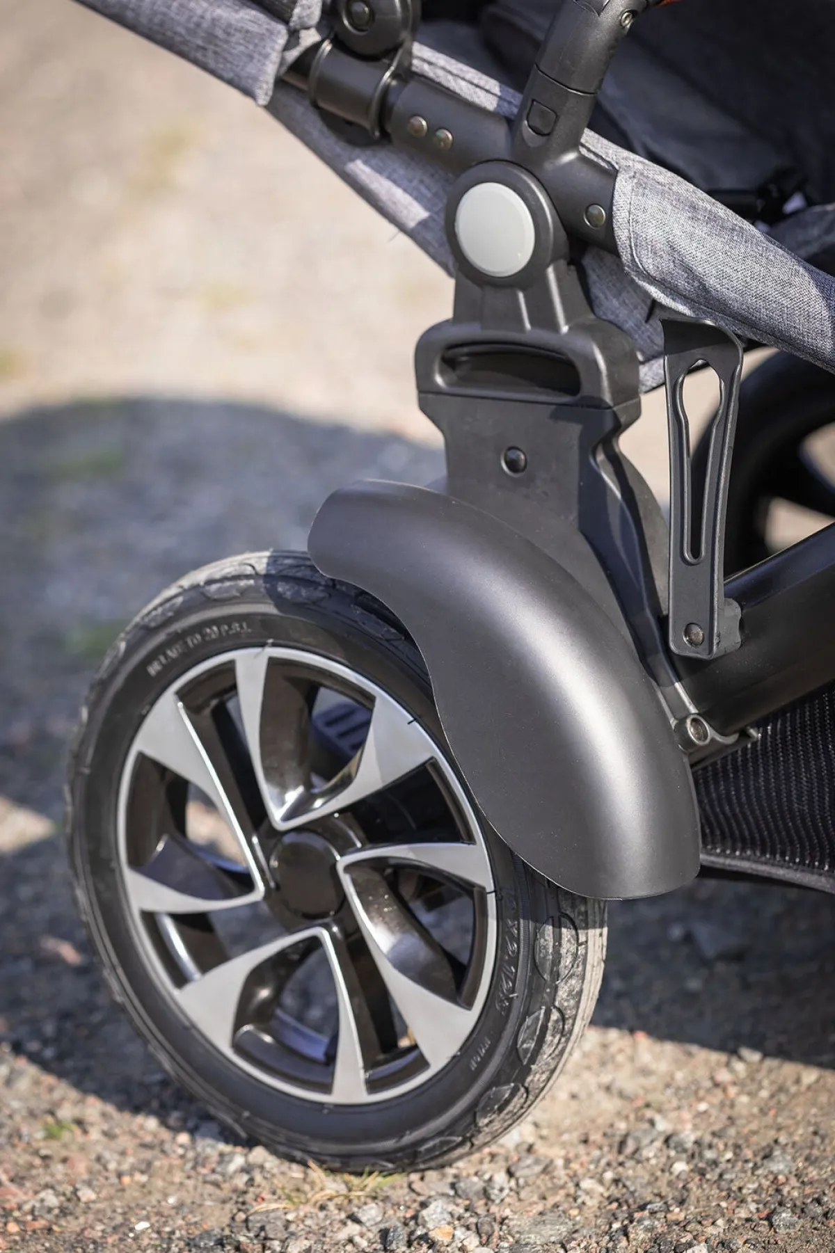 Stellet er udstyret med støddæmpende fjedring og store lufthjul bagpå for en fleksibel bevægelse på alle slags underlag samt en stor opbevaringskurv underneden til alt det, der er behov for under gåturen.