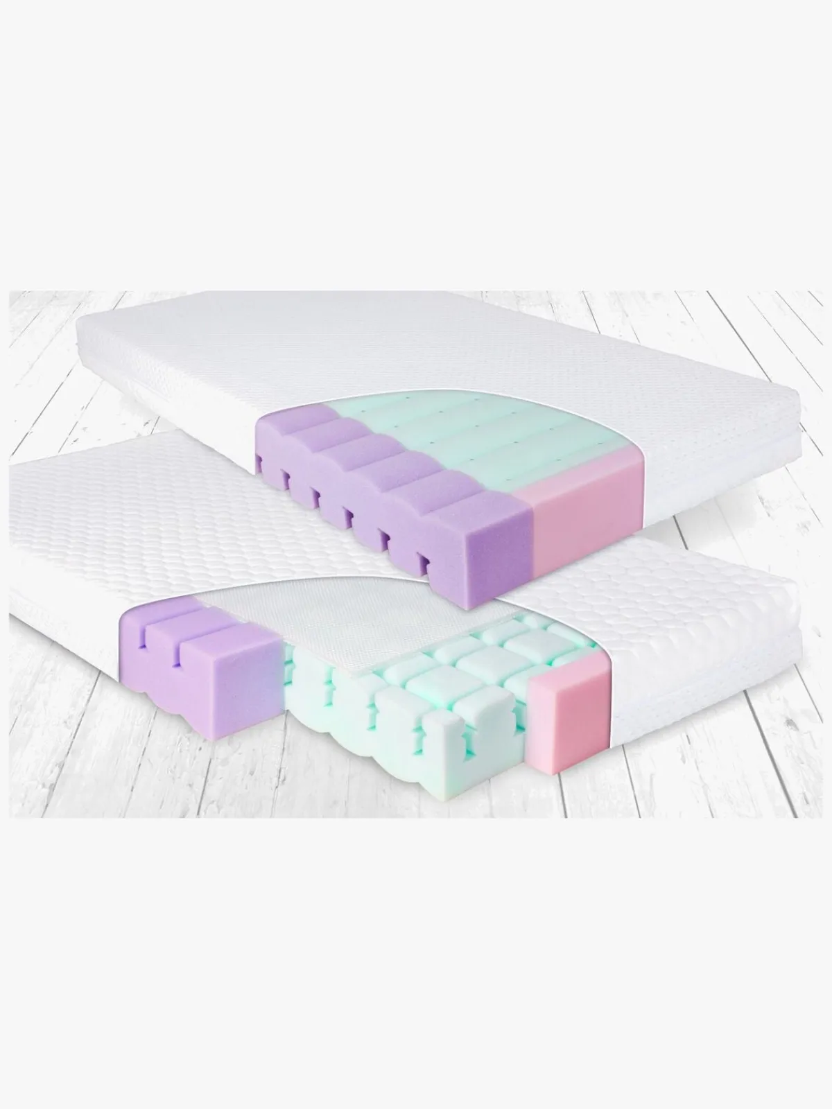 - Tosidet konstruktion – den ene side fungerer som babymadras og en fastere side til større børn