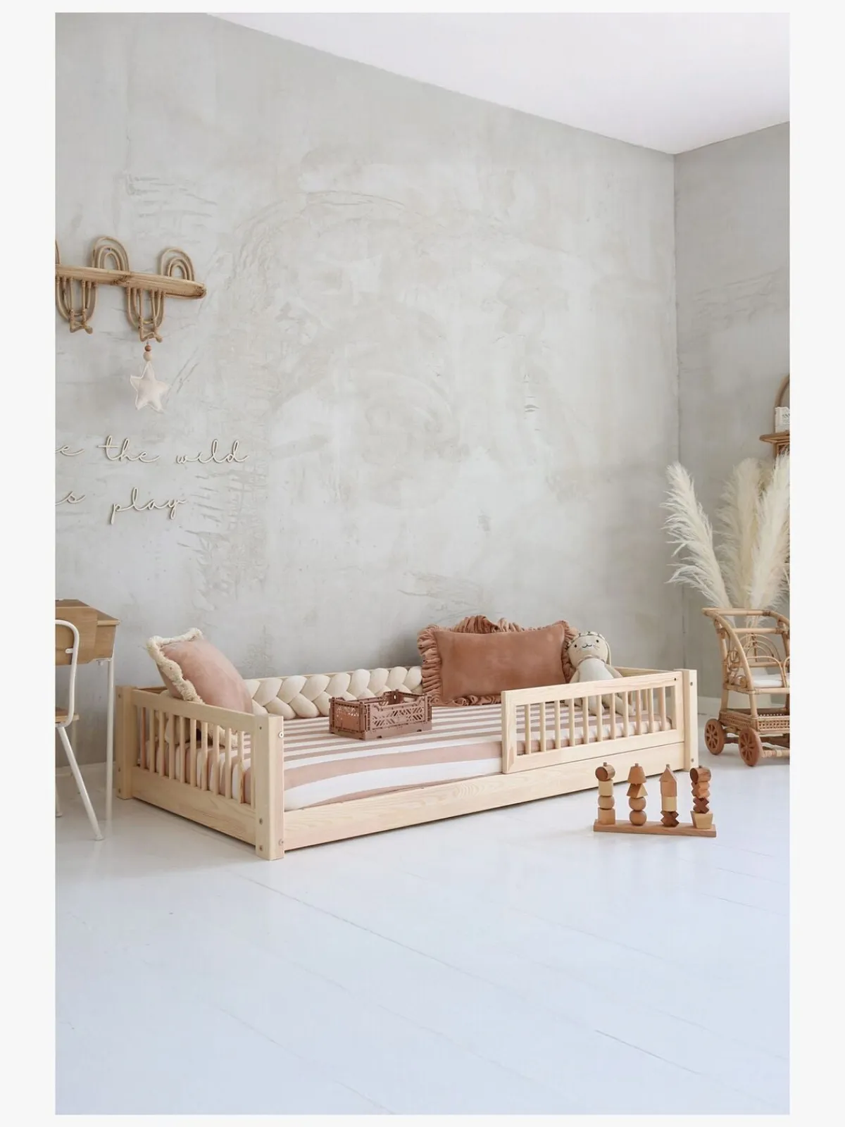 – Sengen er lav, hvilket betyder, at barnet ikke kan falde ud og komme til skade.