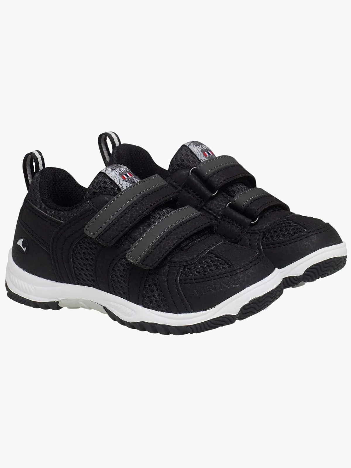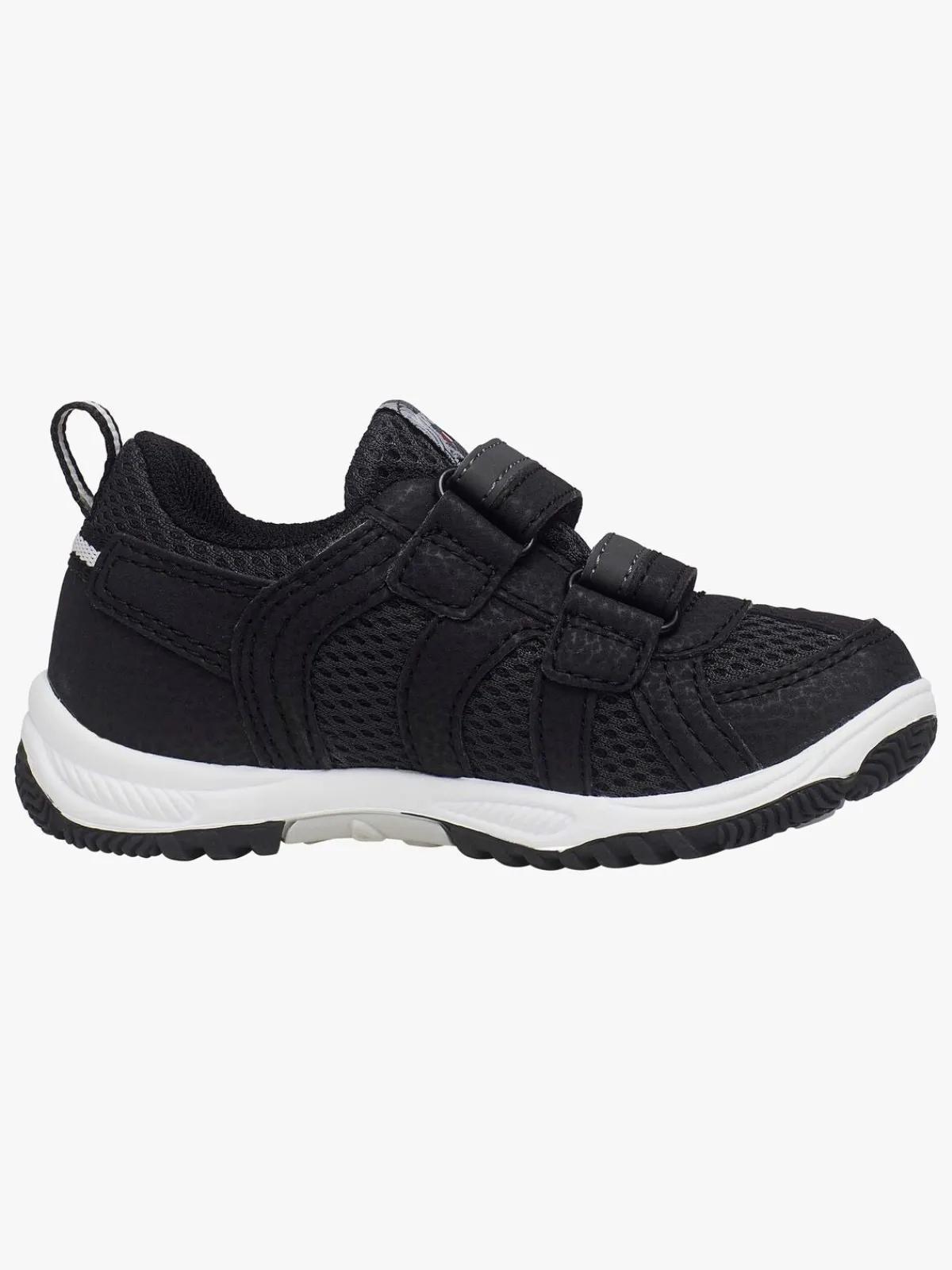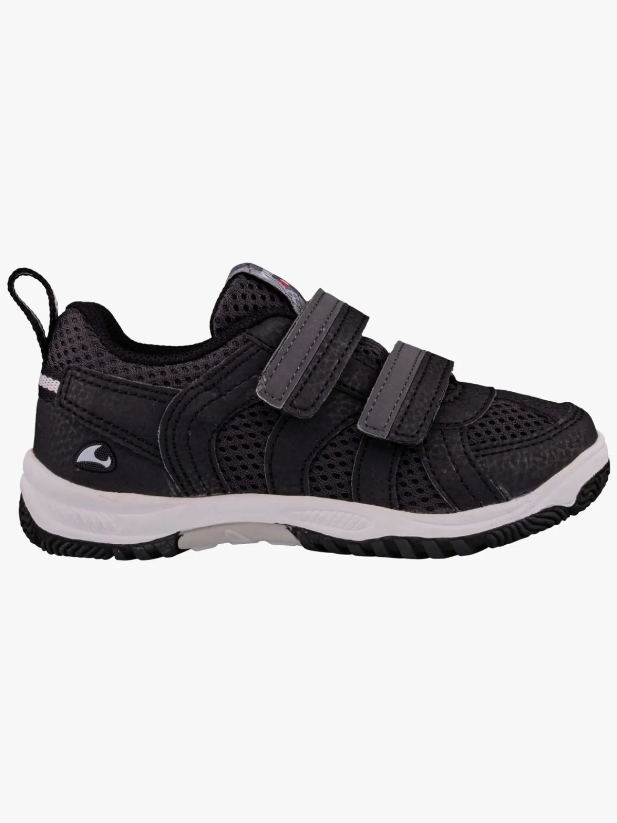 Skoene har overdel af dobbelt polyesternetmateriale, og de er desuden forstærkede i tå og hæl, hvilket gør dem ekstra slidstærke. Den udvendige membran gør skoene åndbare, så fødderne holder sig friske. Skoene har en kraftigt mønstret udvendig gummisål, så dit barn kan løbe på alle slags underlag. Du justerer nemt pasformen ved hjælp af de to velcrobånd.