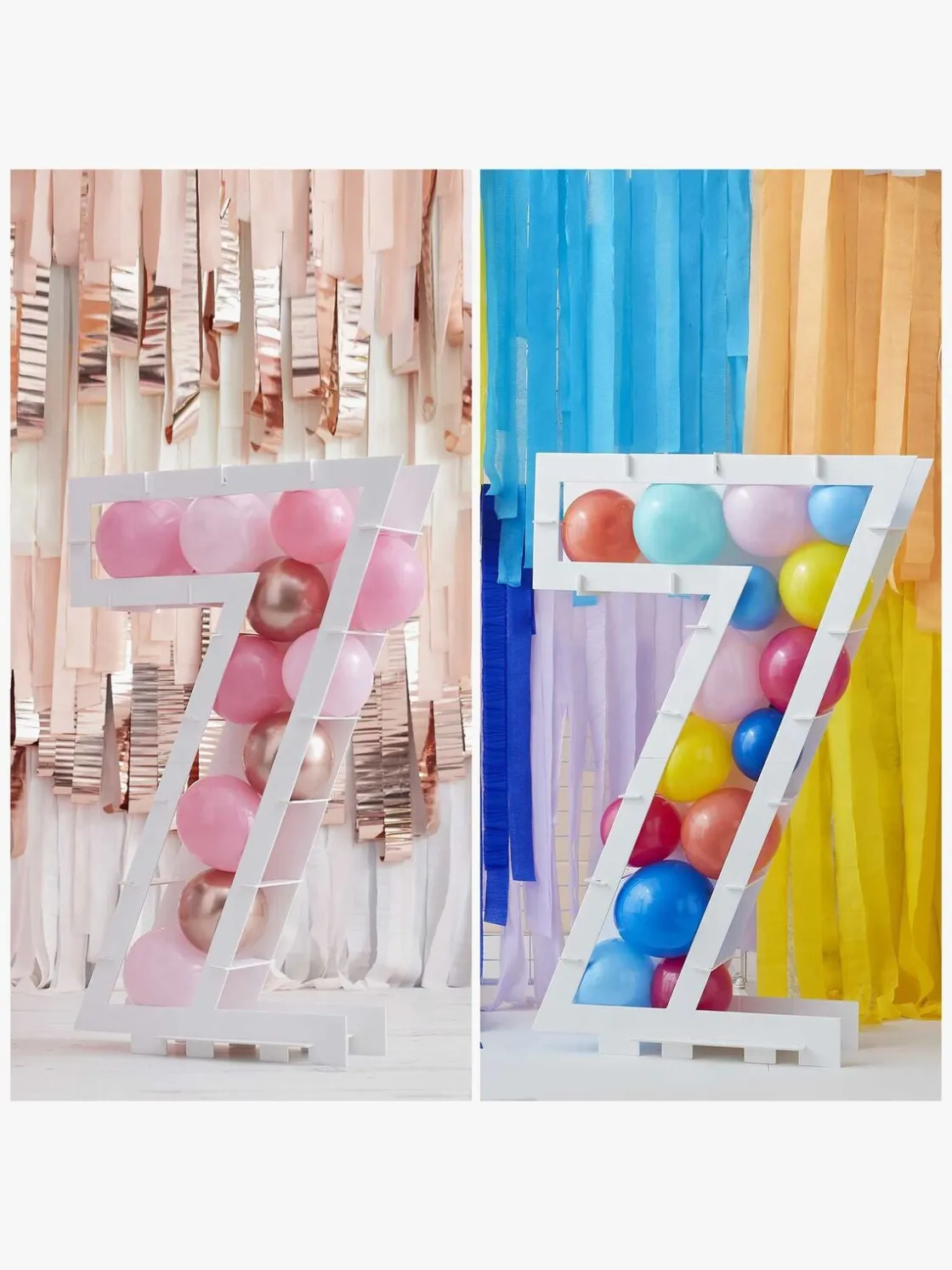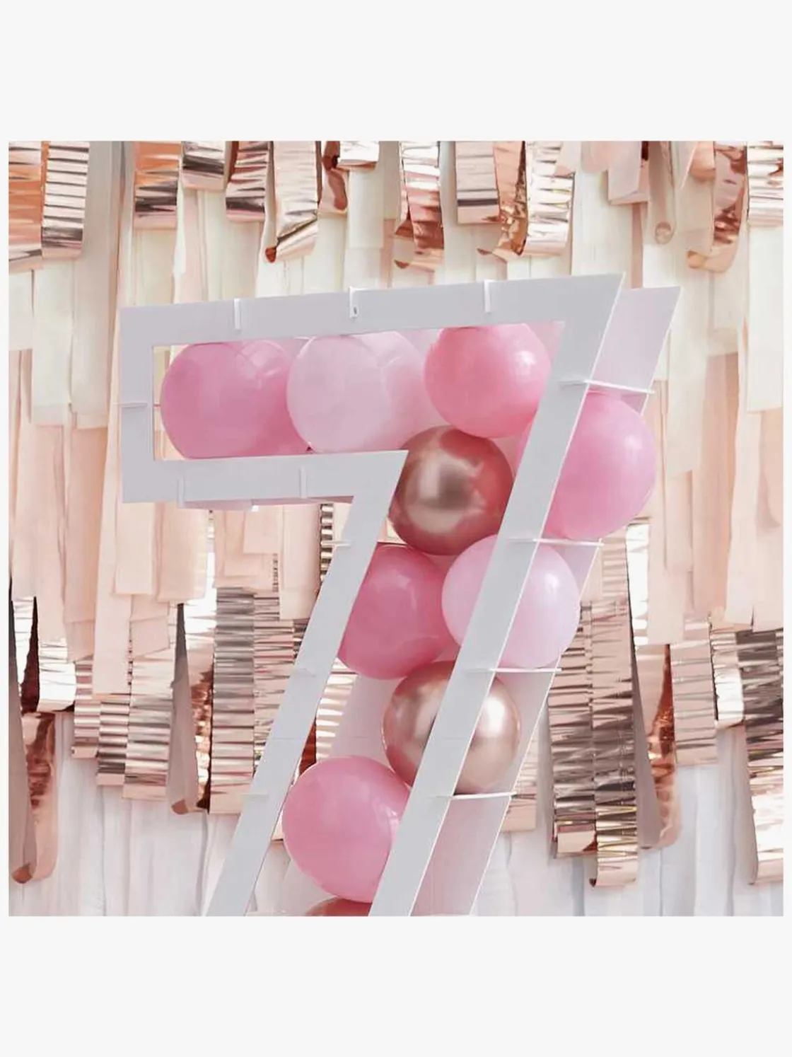 Dekorativt, hvidt Mosaic “7” ballonstativ fra Ginger Ray med et tal. Det har en genanvendelig emballage. Perfekt til festen.