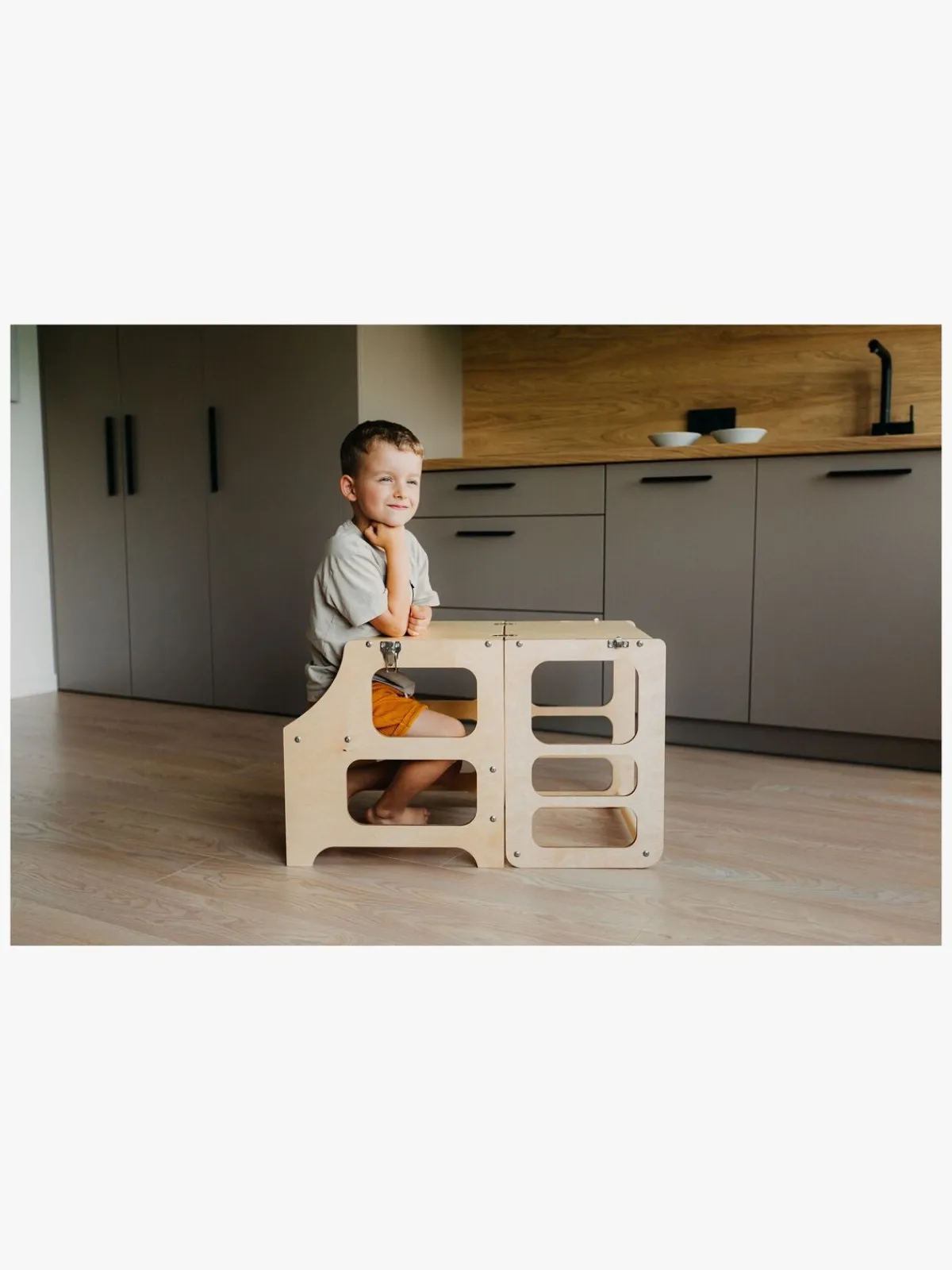 – Kan laves om til et bord med stol.