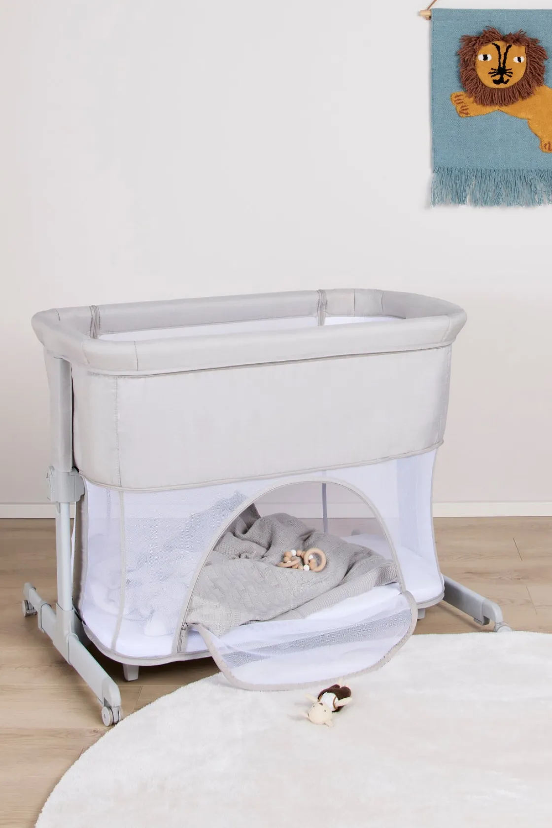 – 2-in-1 bedside crib og kravlegård.