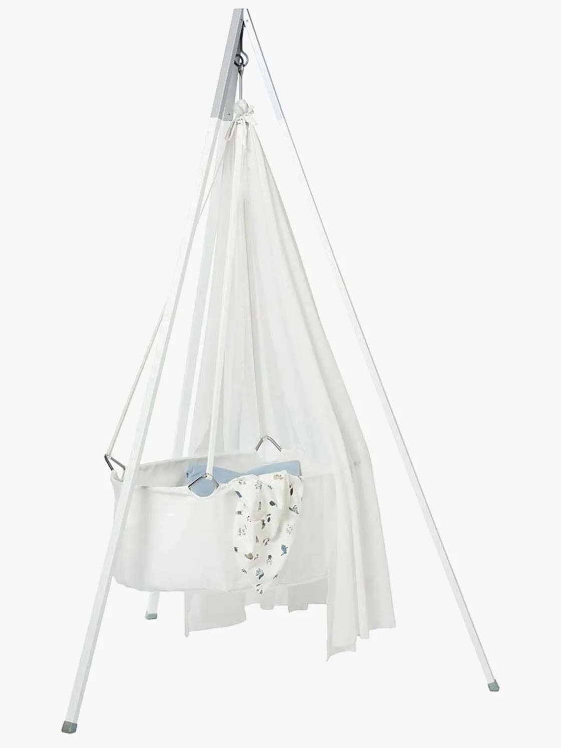 | Materiale | Vugge: 100 % økologisk bomuld. Stel: stål. |