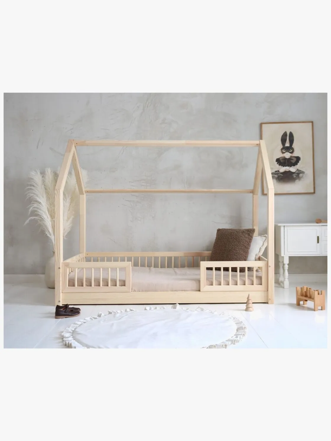 – Sengen er lav, hvilket betyder, at barnet ikke kan falde ud og komme til skade.