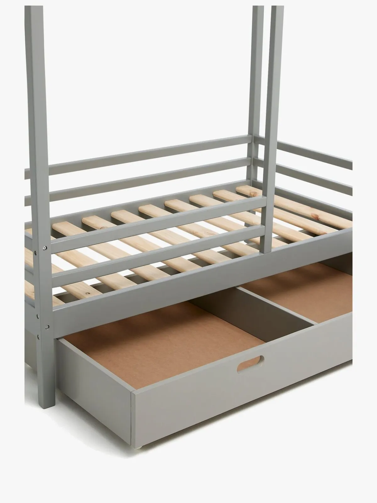 Sengeskuffen har hjul på undersiden og to store rum til alle barnets ting og to praktiske håndtag.