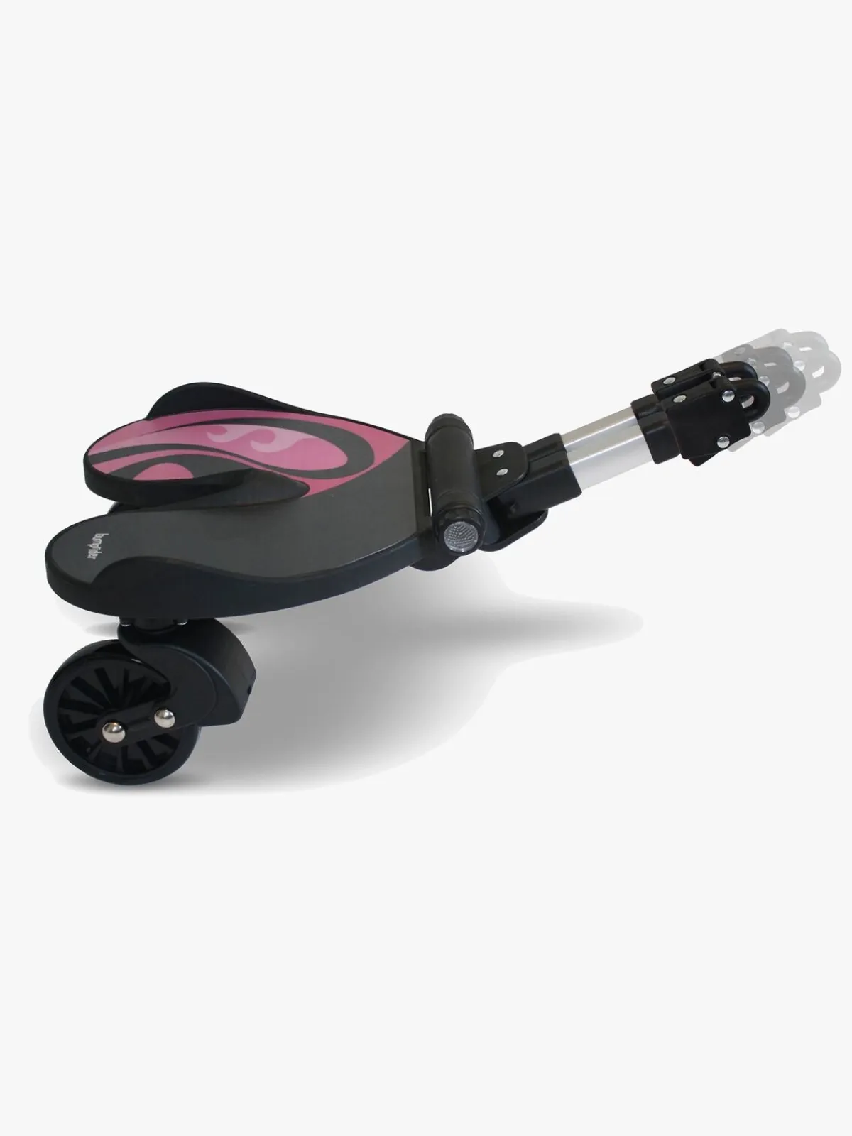 En afbalanceret affjedringsteknik giver barnet en jævn og behagelig ståplads, selv på ujævnt underlag, og det sættes fast på barnevognen med et snuptag. Lettere bliver det ikke!