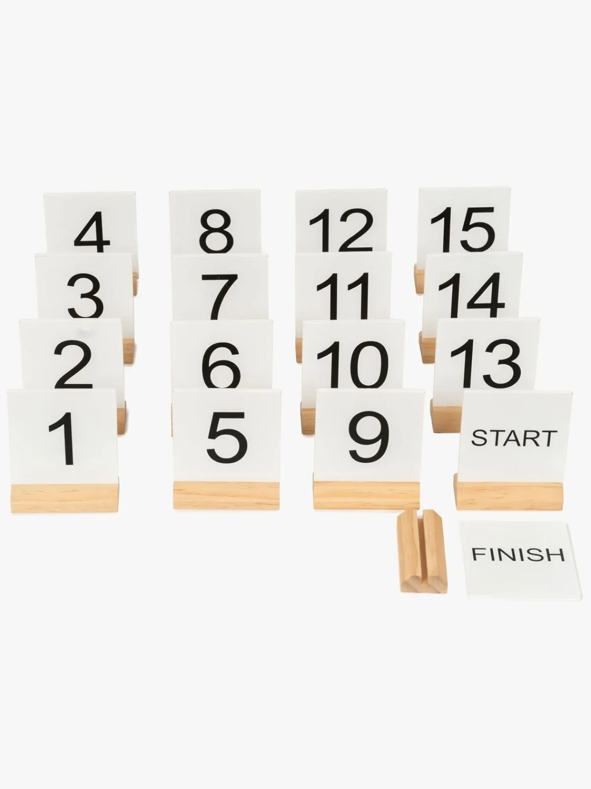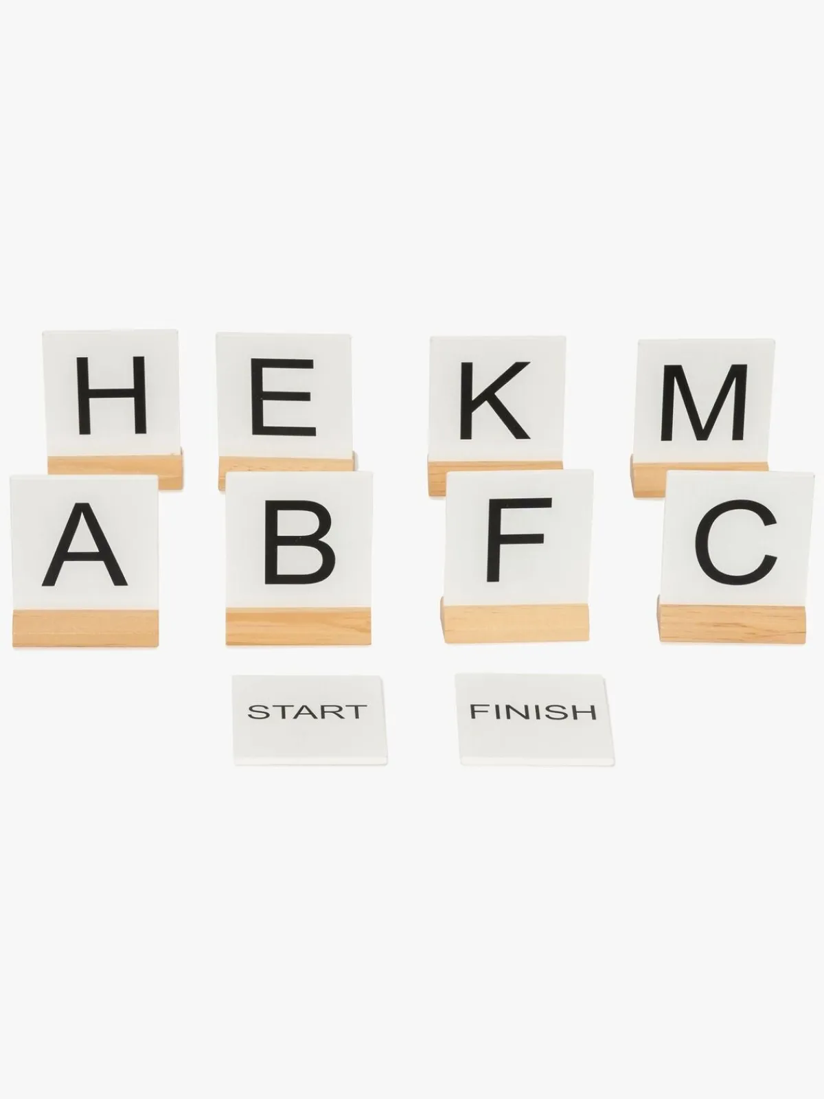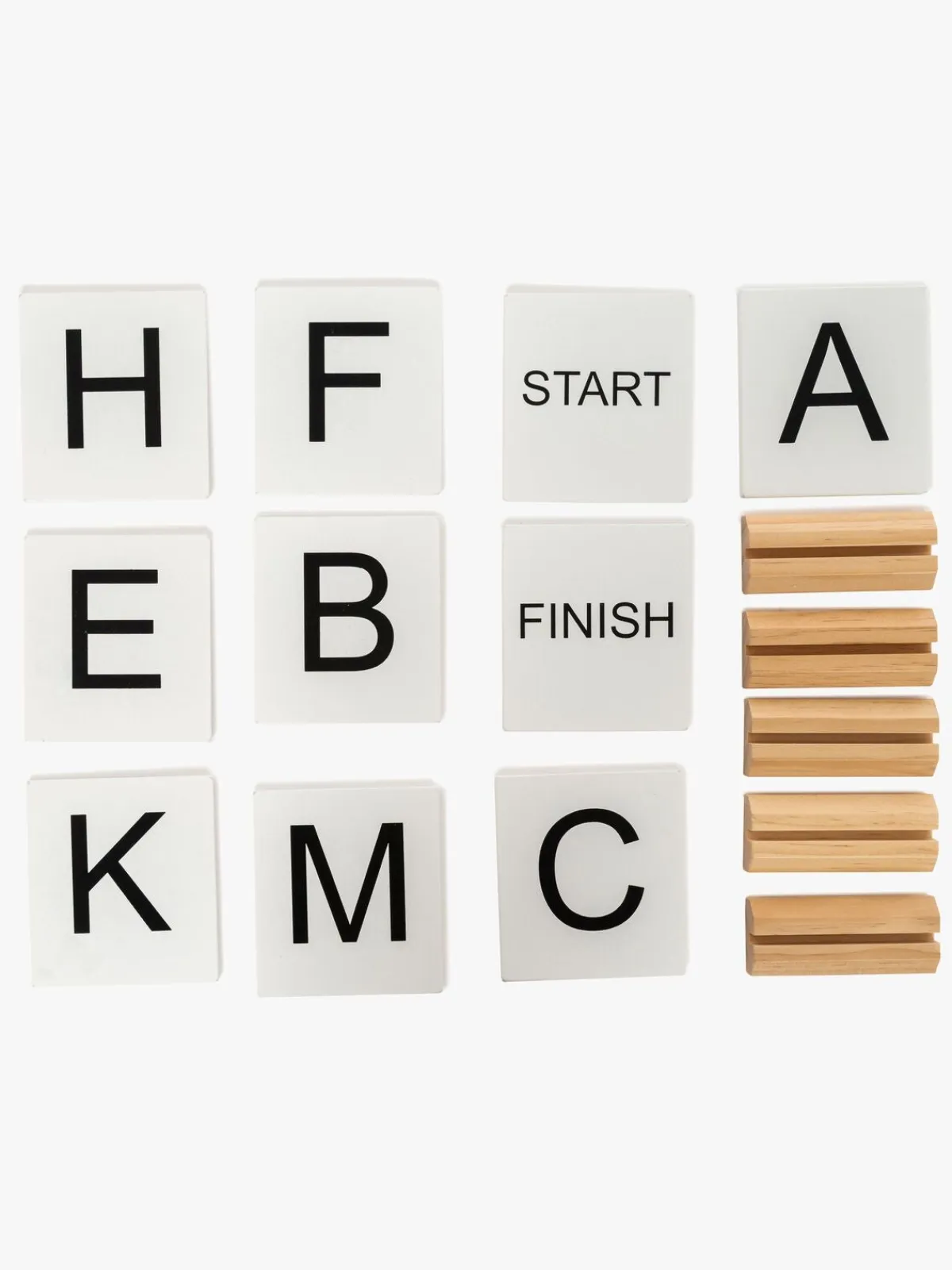 – Hver markør er dobbeltsidet med bogstaver (A-F) på den ene side og tal (1-15) på den anden.