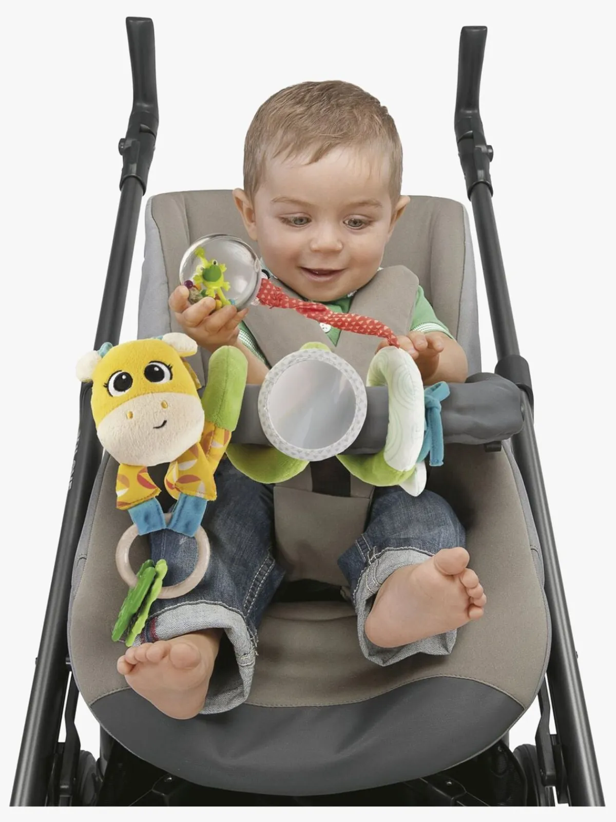 – Sjove farver og et spejl til visuel stimulering.