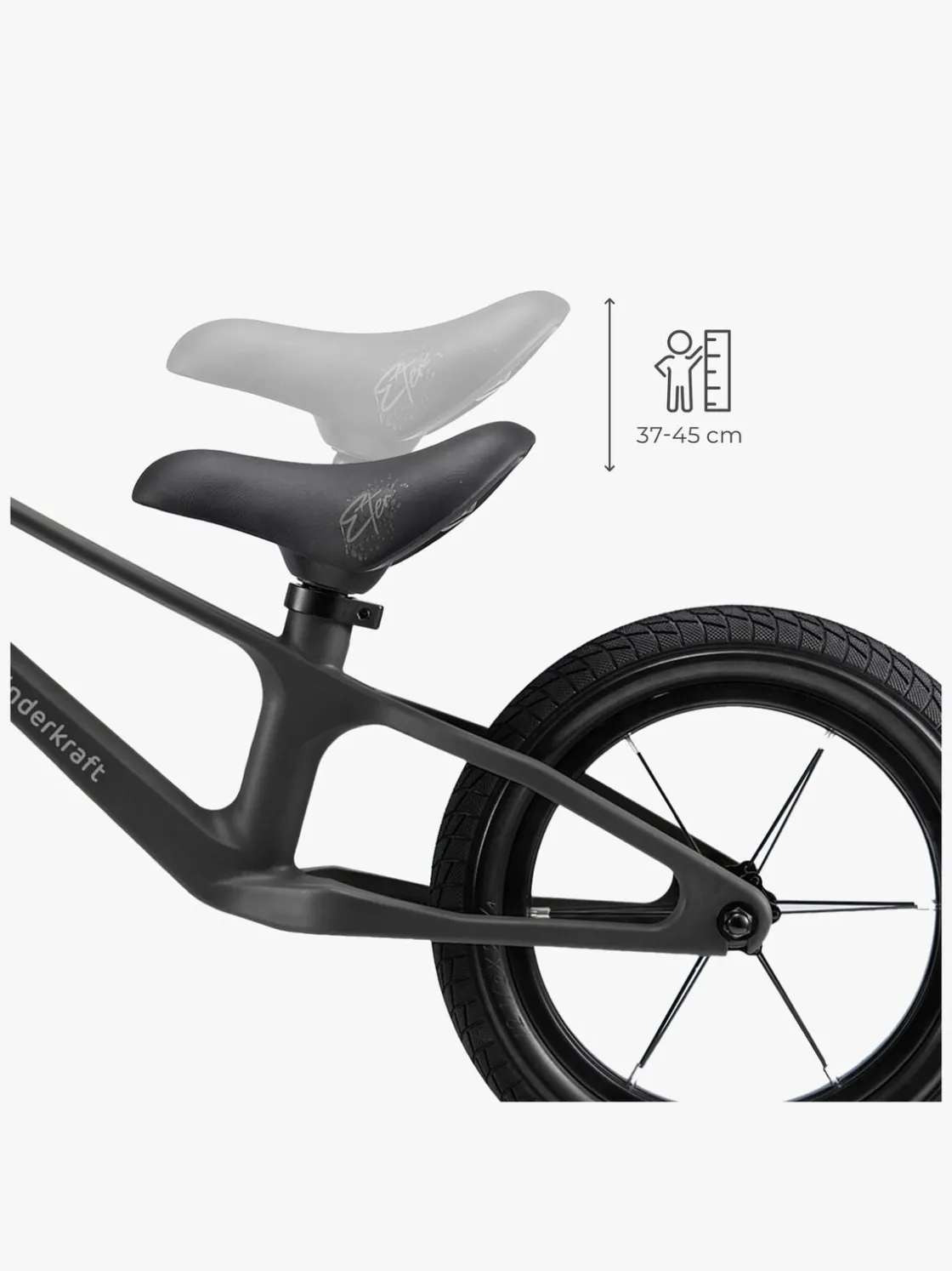 – Justerbar sadelhøjde: 37-45 cm.