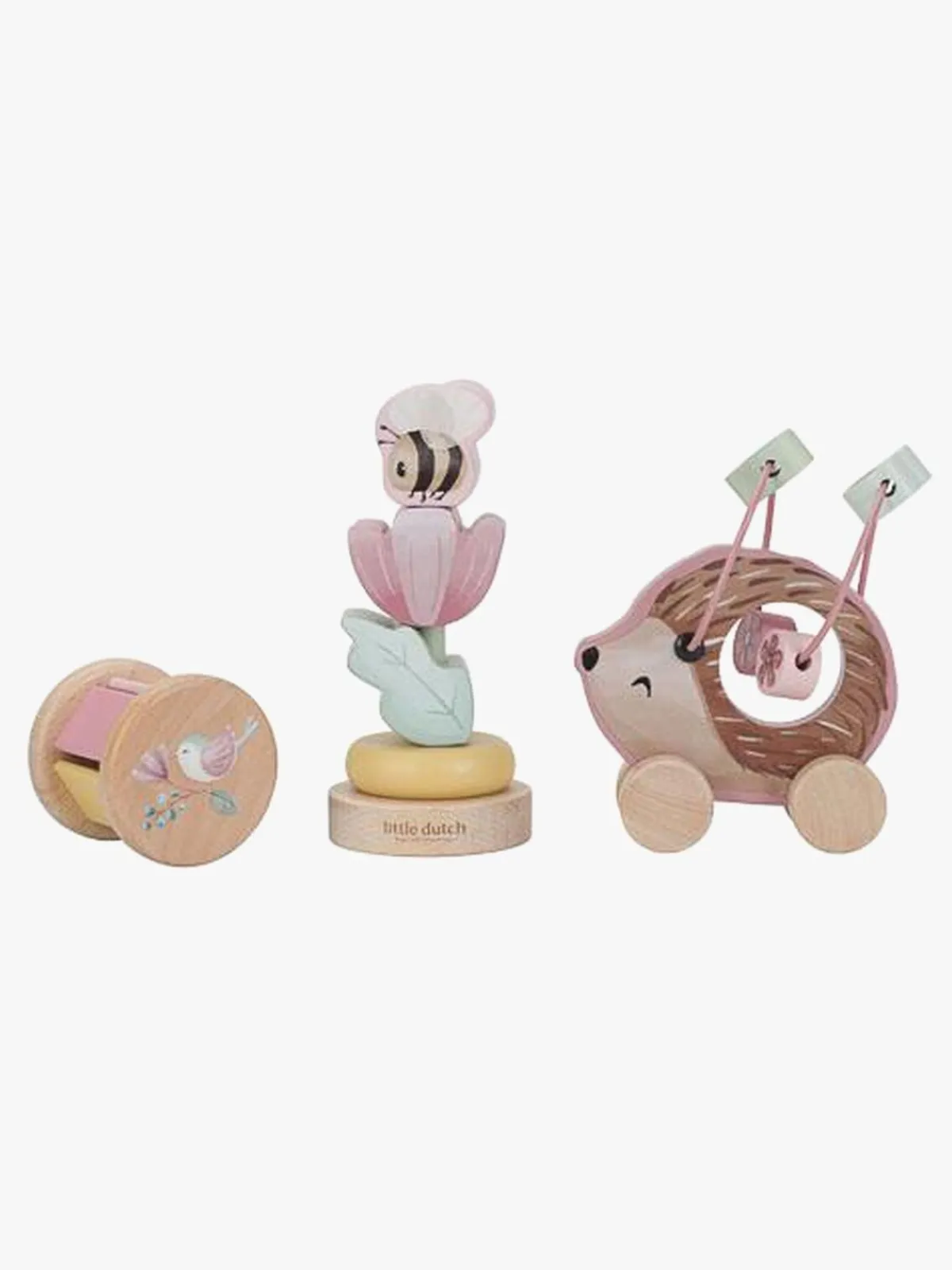– Indeholder: 1 rullende pindsvin, 1 stablelegetøj, 1 rangle.
