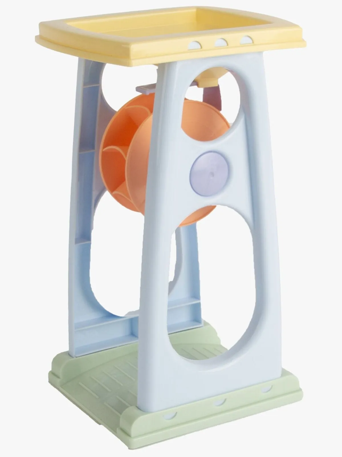 – Hæld vand eller sand i tragten for at få hjulet til at snurre!