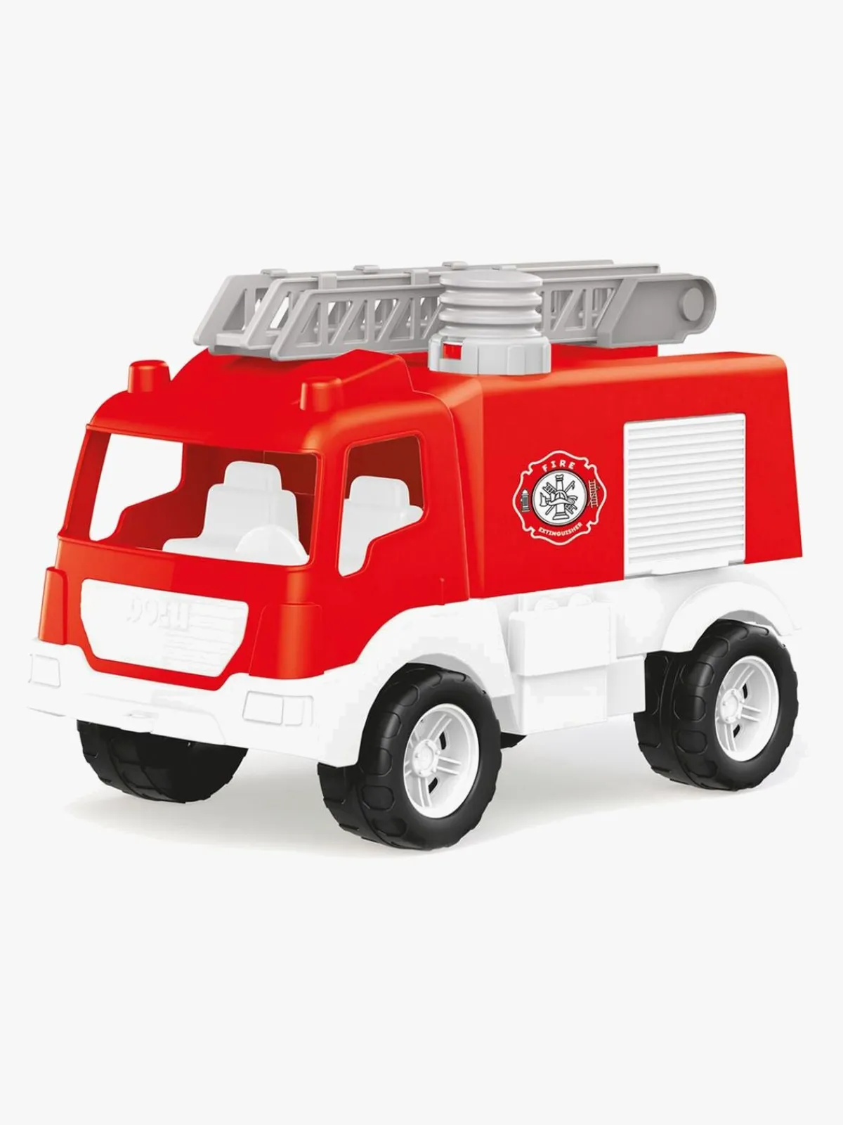 Brandbilen har en rigtig vandpumpe og tre låger, der kan åbnes.