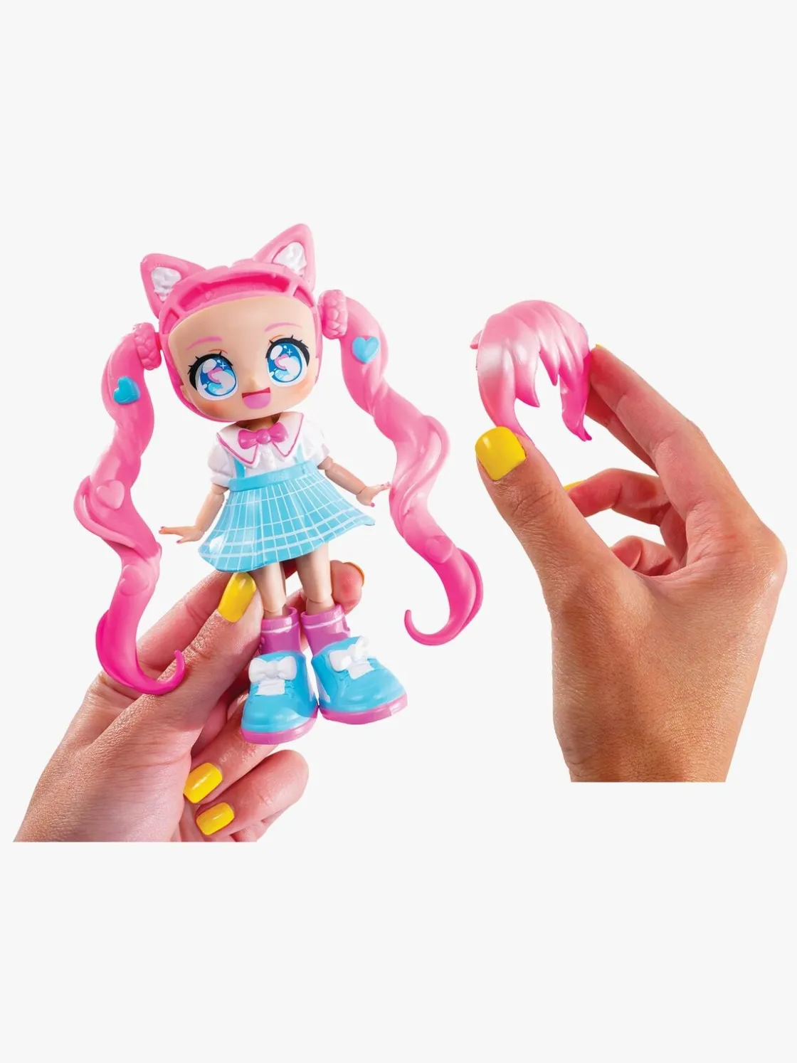 – Indeholder: 1 dukke, 4 ansigter, 2 frisurer, 2 outfits, 2 par sko.