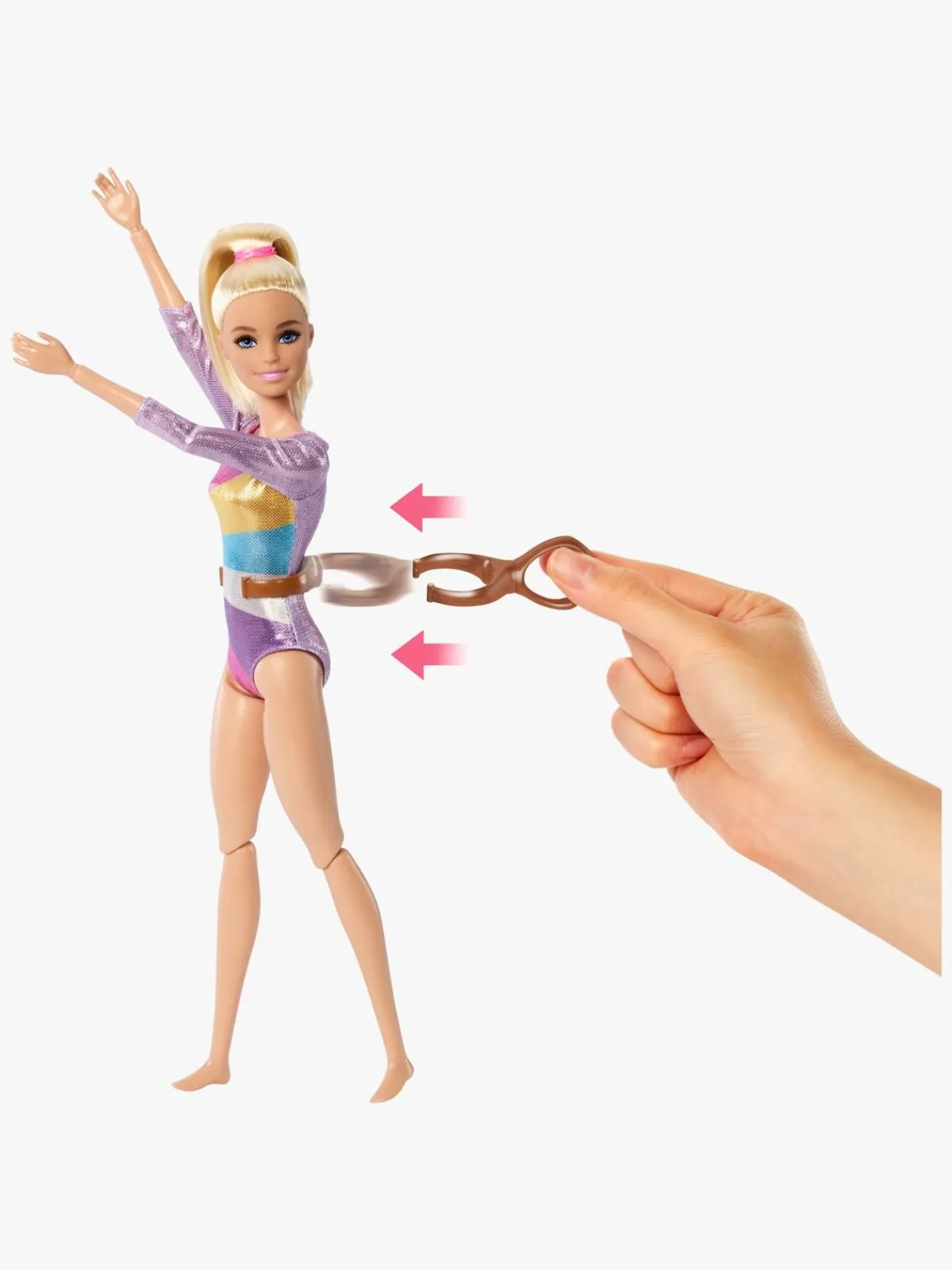 – Indeholder: 1 dukke, 1 balancebane, 2 outfits, 2 ringe, 1 drikkedunk, 1 frugt, 1 trofæ, 1 medaljon, 1 gymnastikpose, 2 pinde, 1 klemme.