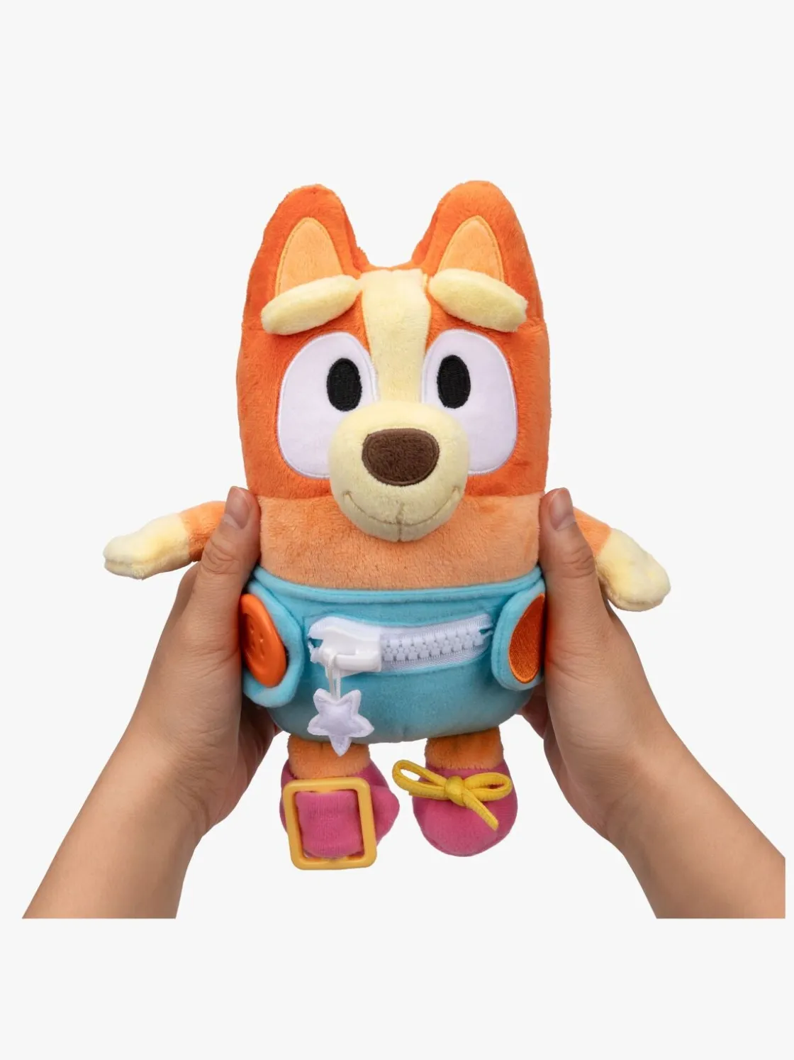 – Her kan man øve sig i at knappe, spænde og lyne tøjet op.