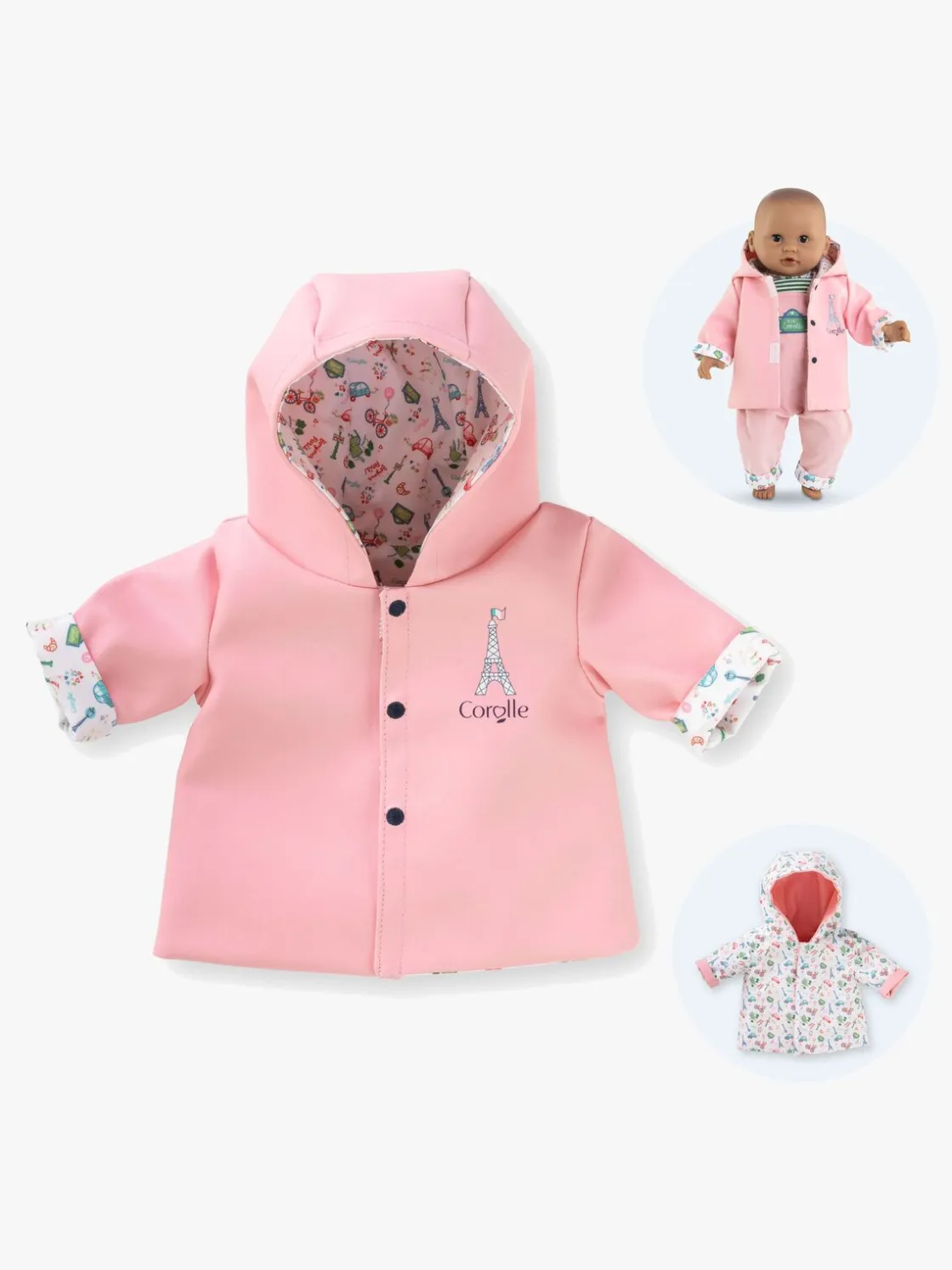 – Regnjakke med vendbart design.