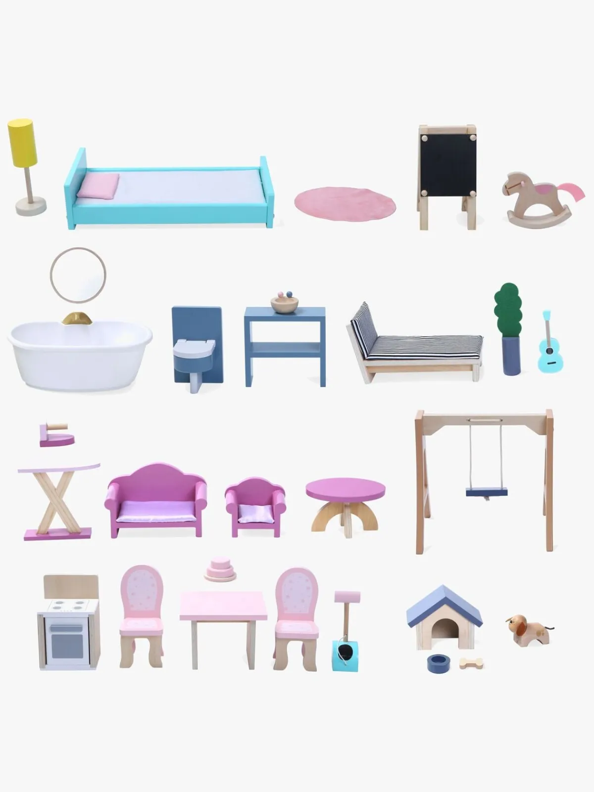 – Komplet møbelsæt til dukkehus.