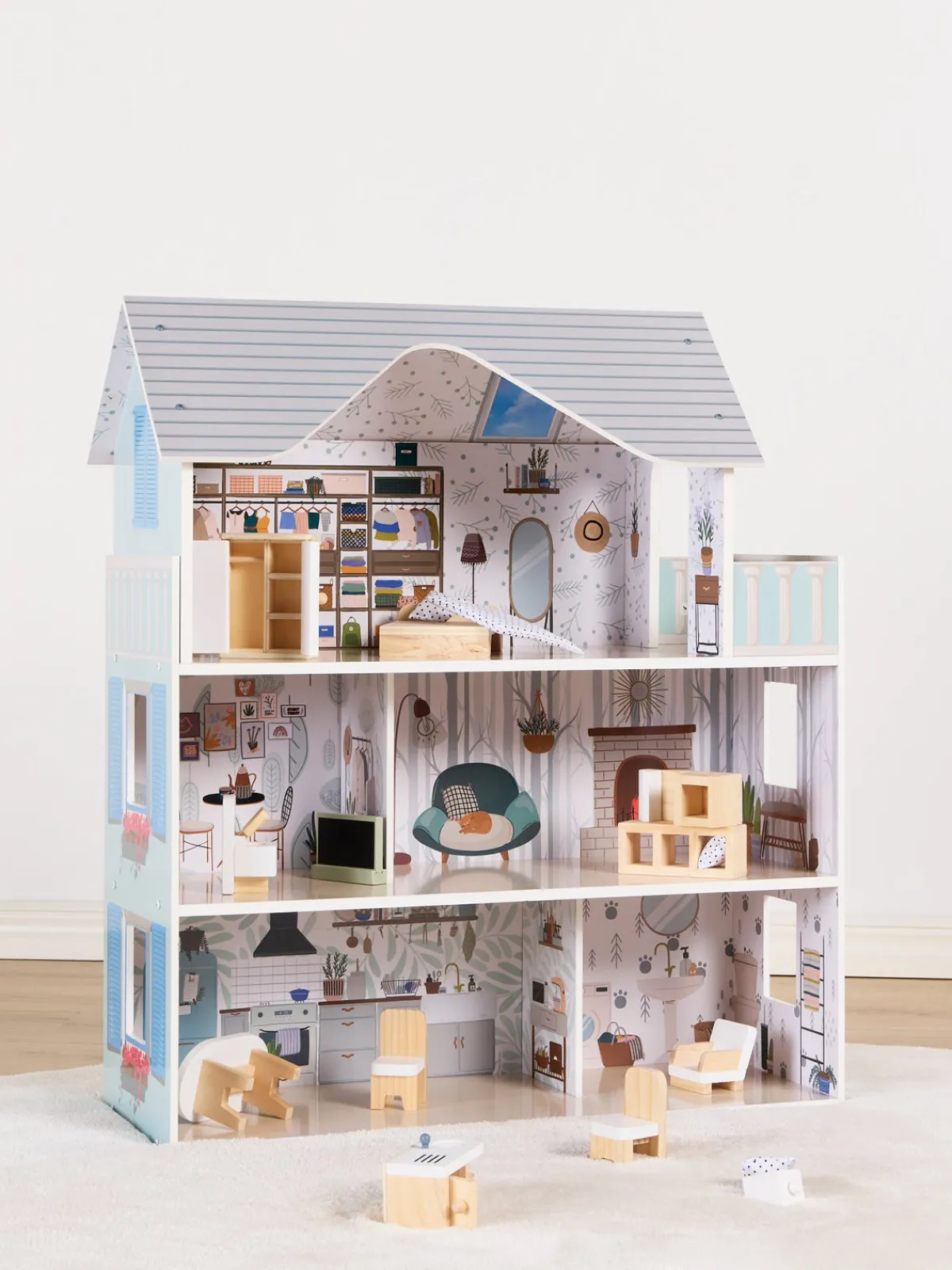 – Komplet møbelsæt til dukkehus.