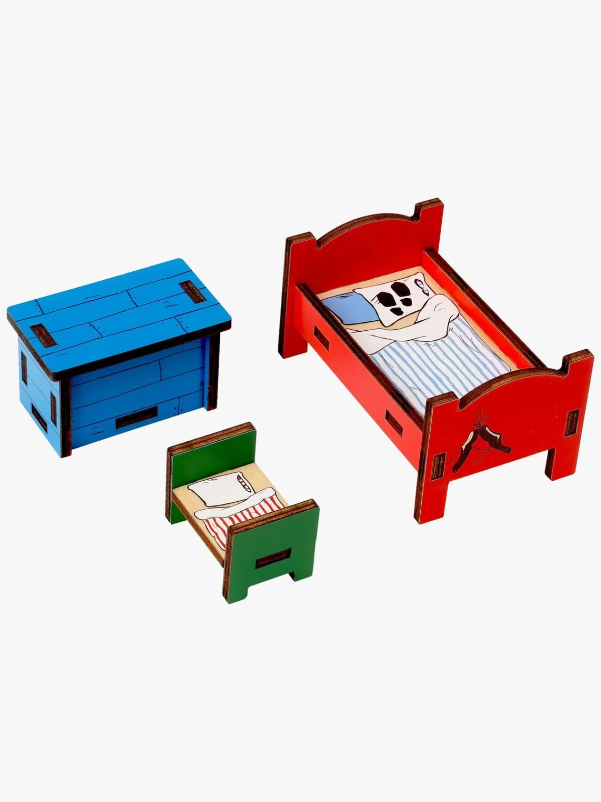 – Indeholder: 1 Pippi-seng, 4 Hr. Nilsson-senge, 1 skattekiste.