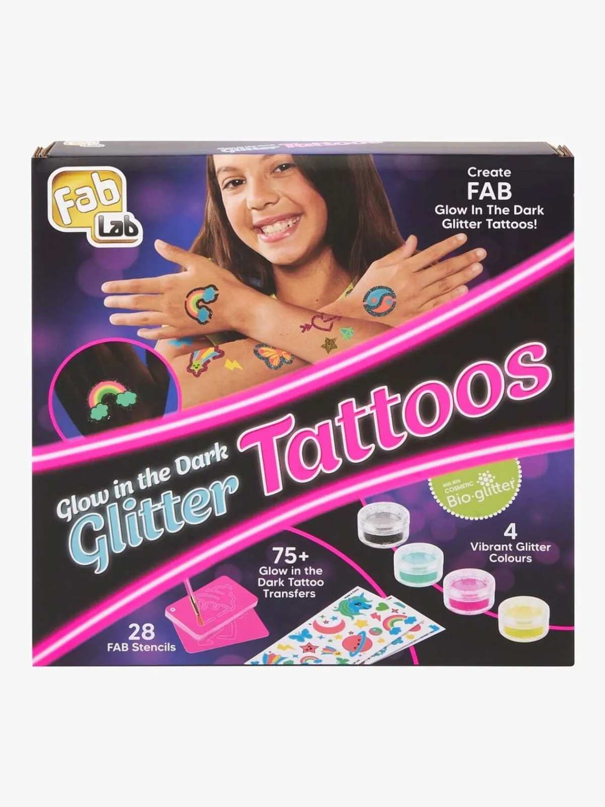– Glittertatoveringer med selvlysende effekt.