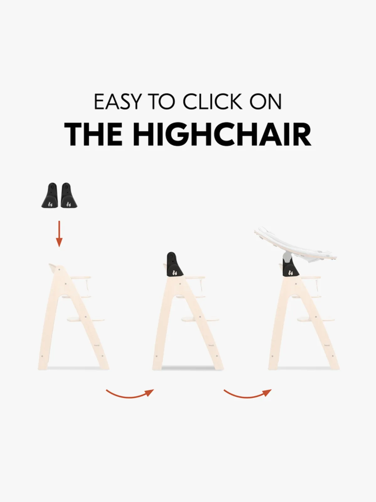 – Monteres let på højstolen med et enkelt klik.
