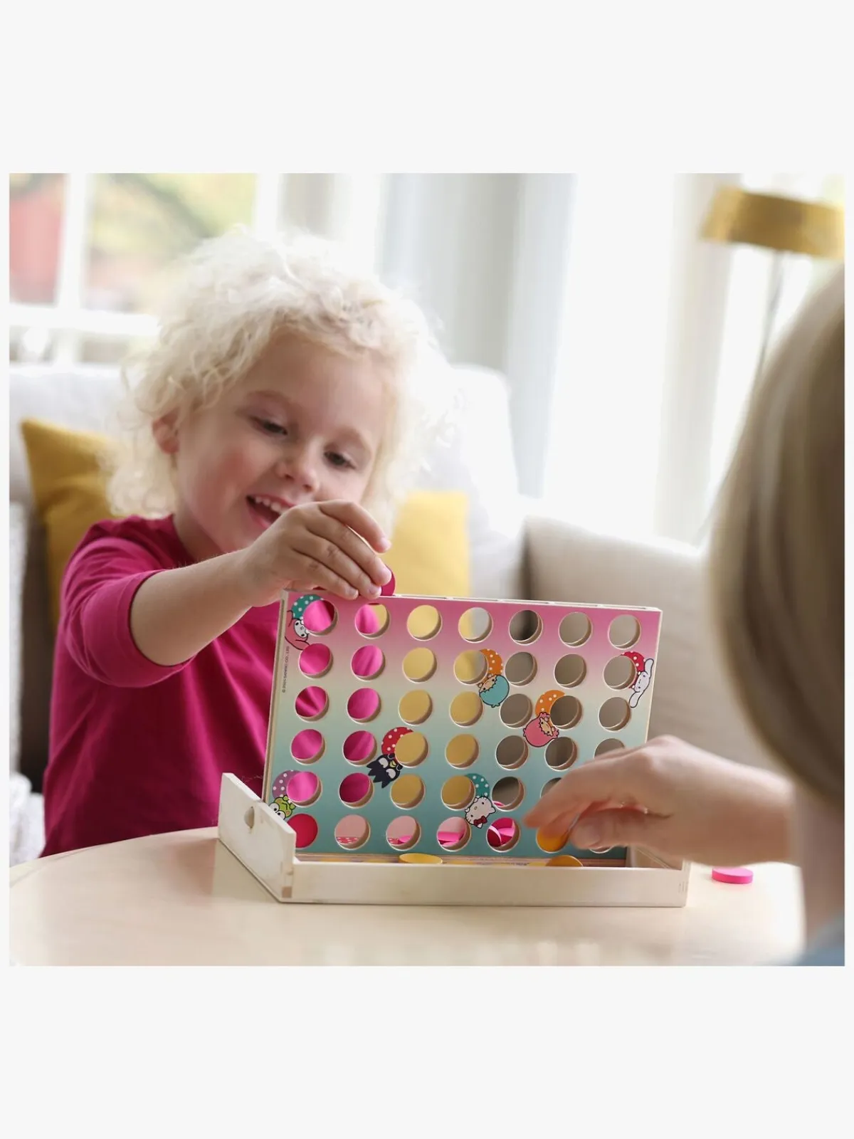 – Indeholder: 1 spilleplade, 21 gule spillebrikker, 21 lyserøde spillebrikker.