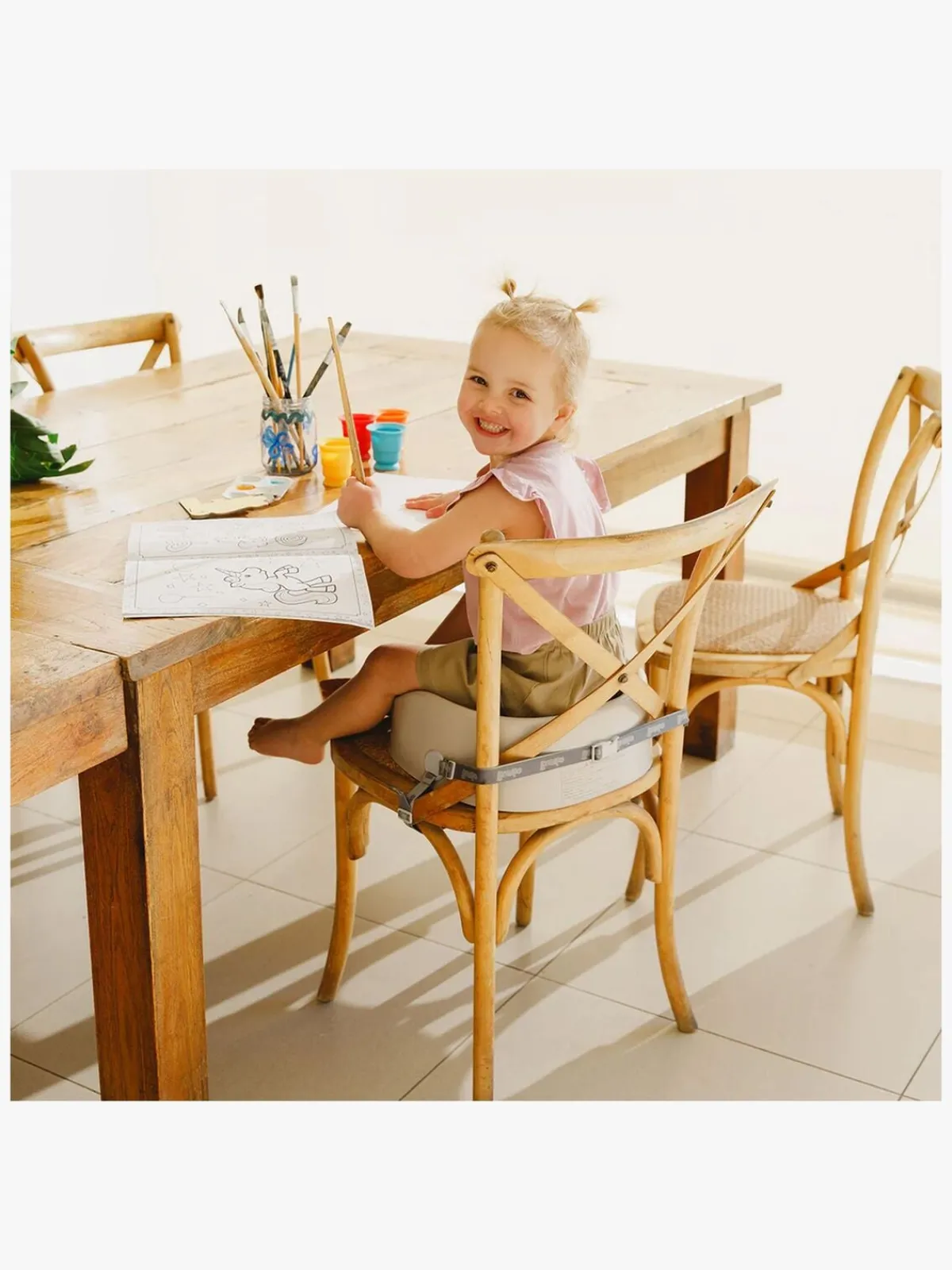– Det komfortable sæde spændes fast på et almindeligt stolesæde og passer til de fleste stole.