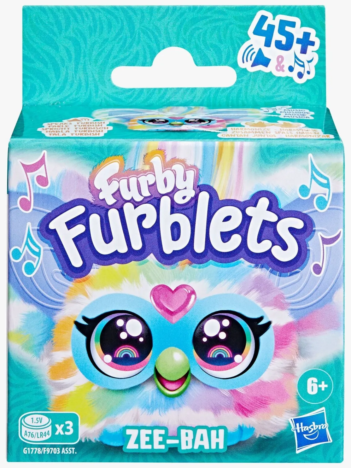 – 45 sange, lyde og Furby-sætninger.