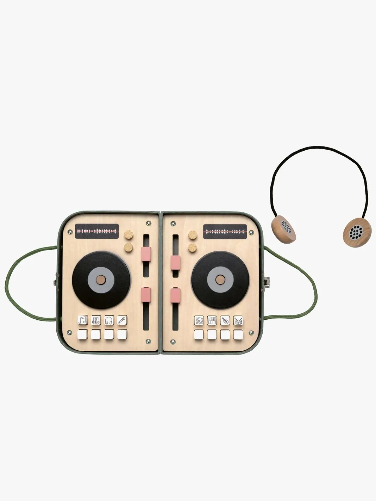 – Fin DJ-scratchplade i træ med headset.