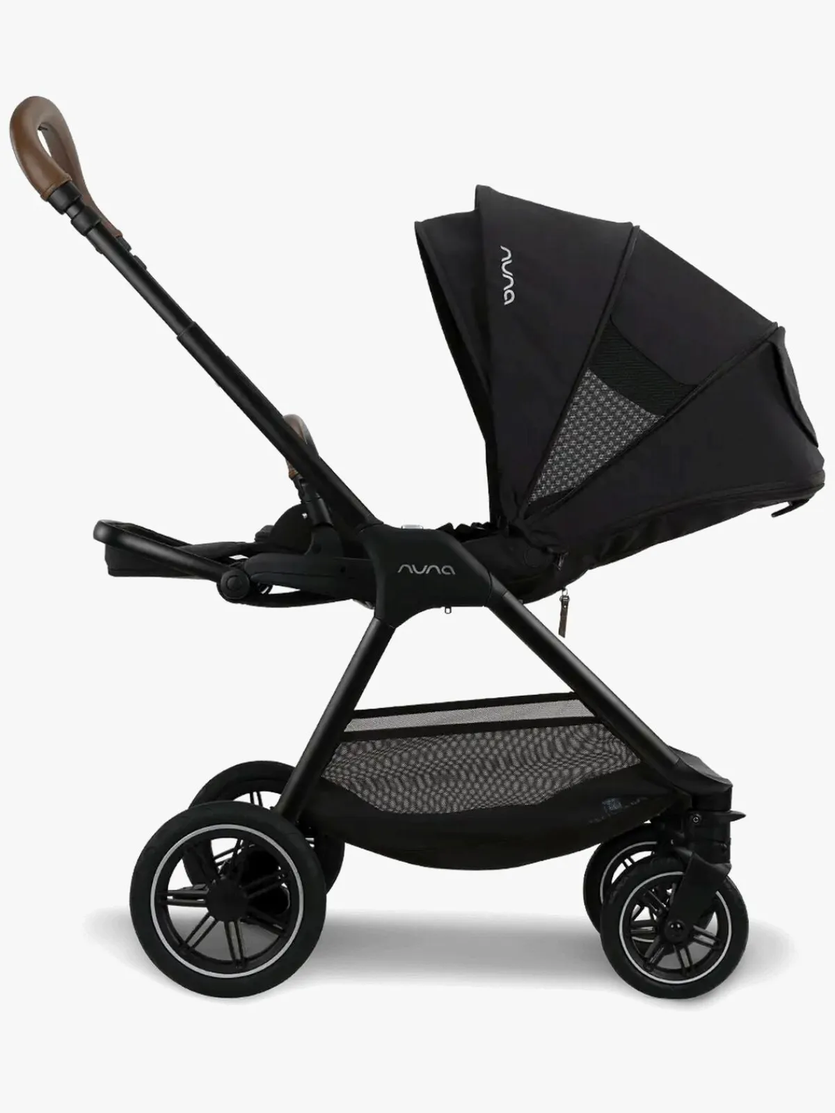 – Sædet kan enkelt udskiftes med en liggedel eller autostol (medfølger ikke).