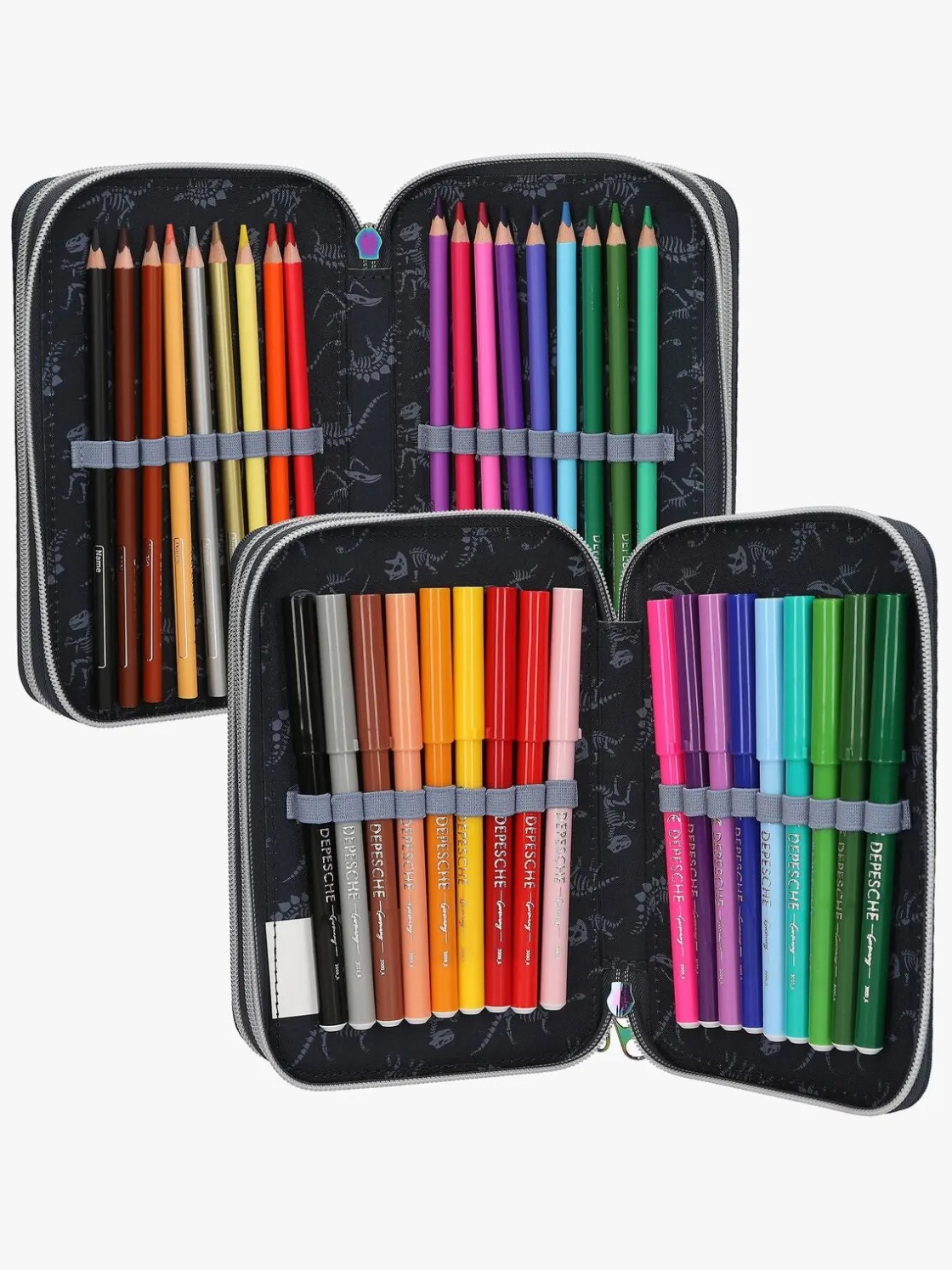 – Indeholder: 1 penalhus, 18 farveblyanter, 18 tusser, 2 blyanter, 1 saks, 1 limstift, 1 blyantspidser, 1 lineal, 1 viskelæder.