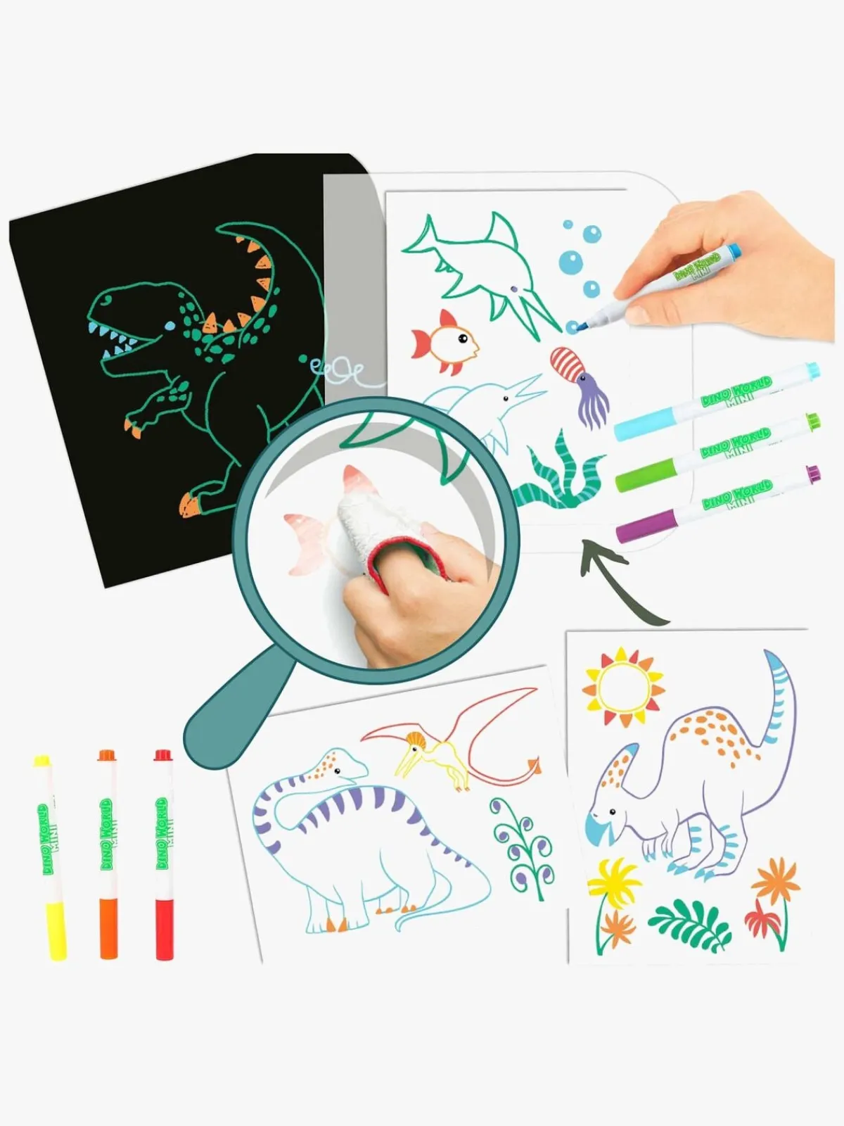 Kreativt Legetøj|DinoWorld Malebog Mal og Visk Ud