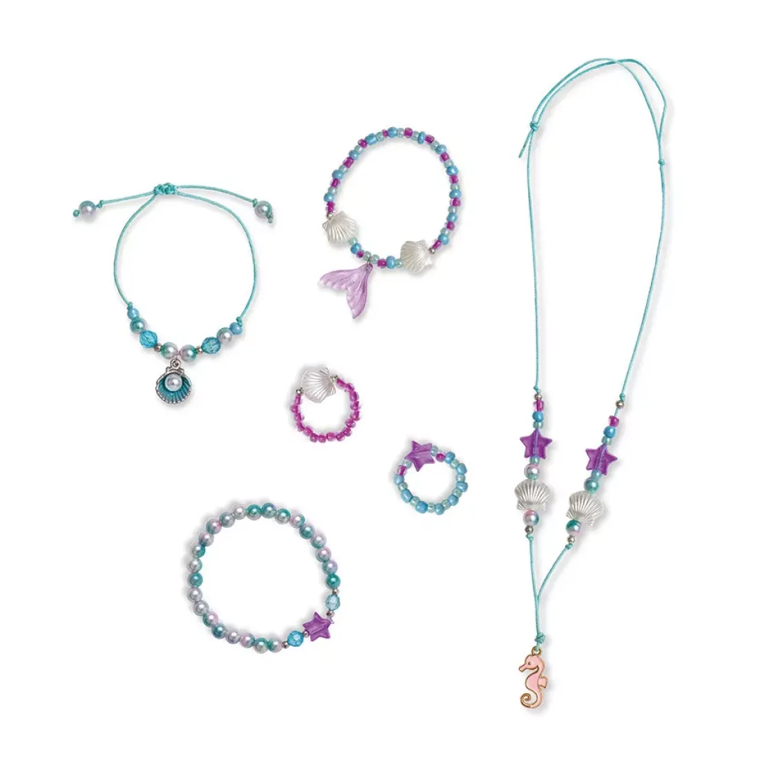 – Indeholder: 3 armbånd, 2 ringe, 1 halskæde, 172 perler.