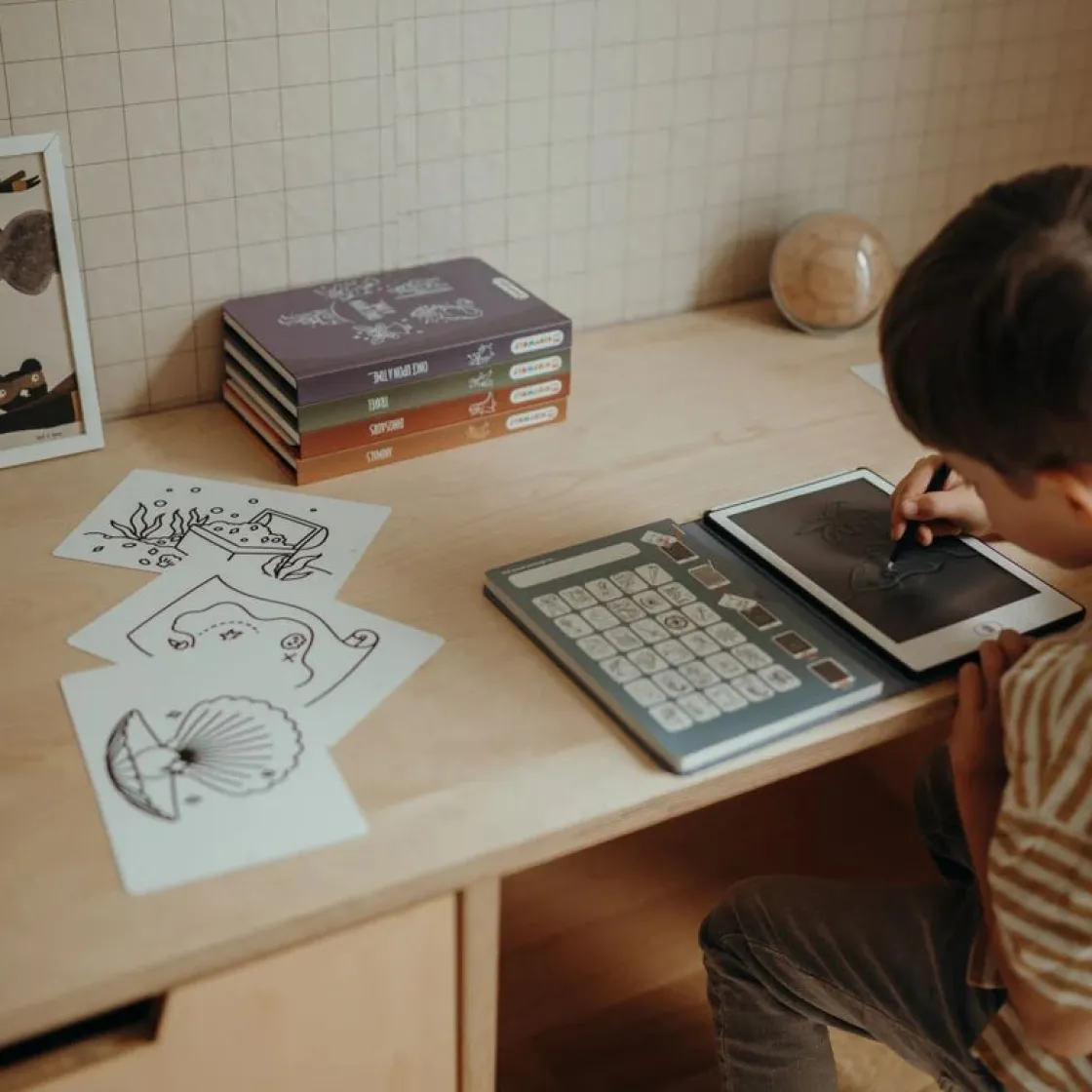 – Indeholder: 1 KIDYDRAW MINI tegnetablet, 1 tus, 30 illustrationer.