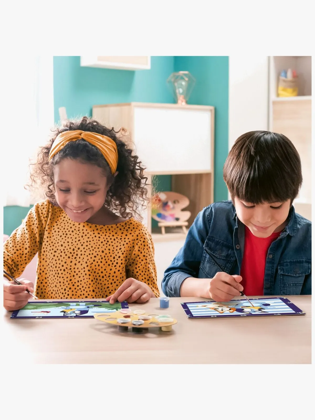 – Indeholder: 2 malertavler, 8 akrylfarver, 1 pensel, 2 billeder, 1 farvepalet.