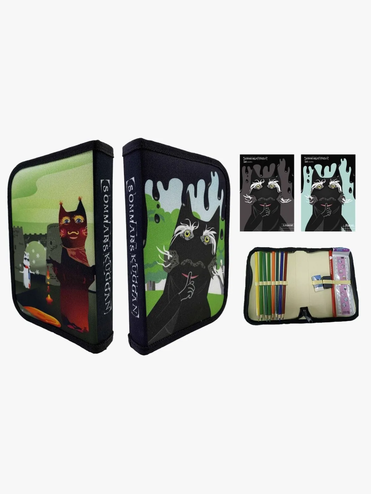 – Indeholder: 1 pencilbag, 8 farveblyanter, 1 viskelæder, 1 lineal, 1 blyantspidser, 1 linjeret notesblok, 1 ternet notesblok.