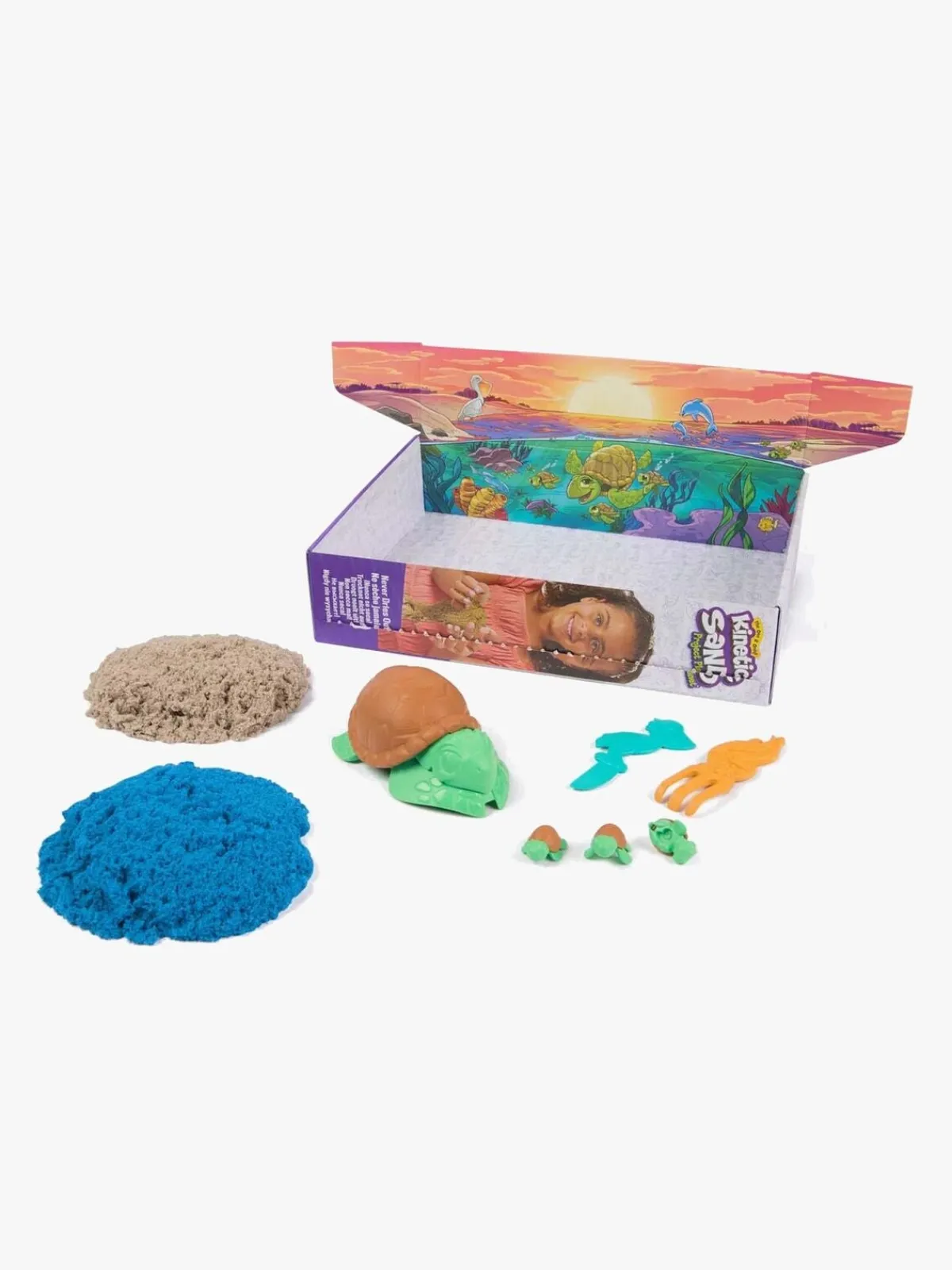 – Indeholder blåt og brunt kinetisk sand.