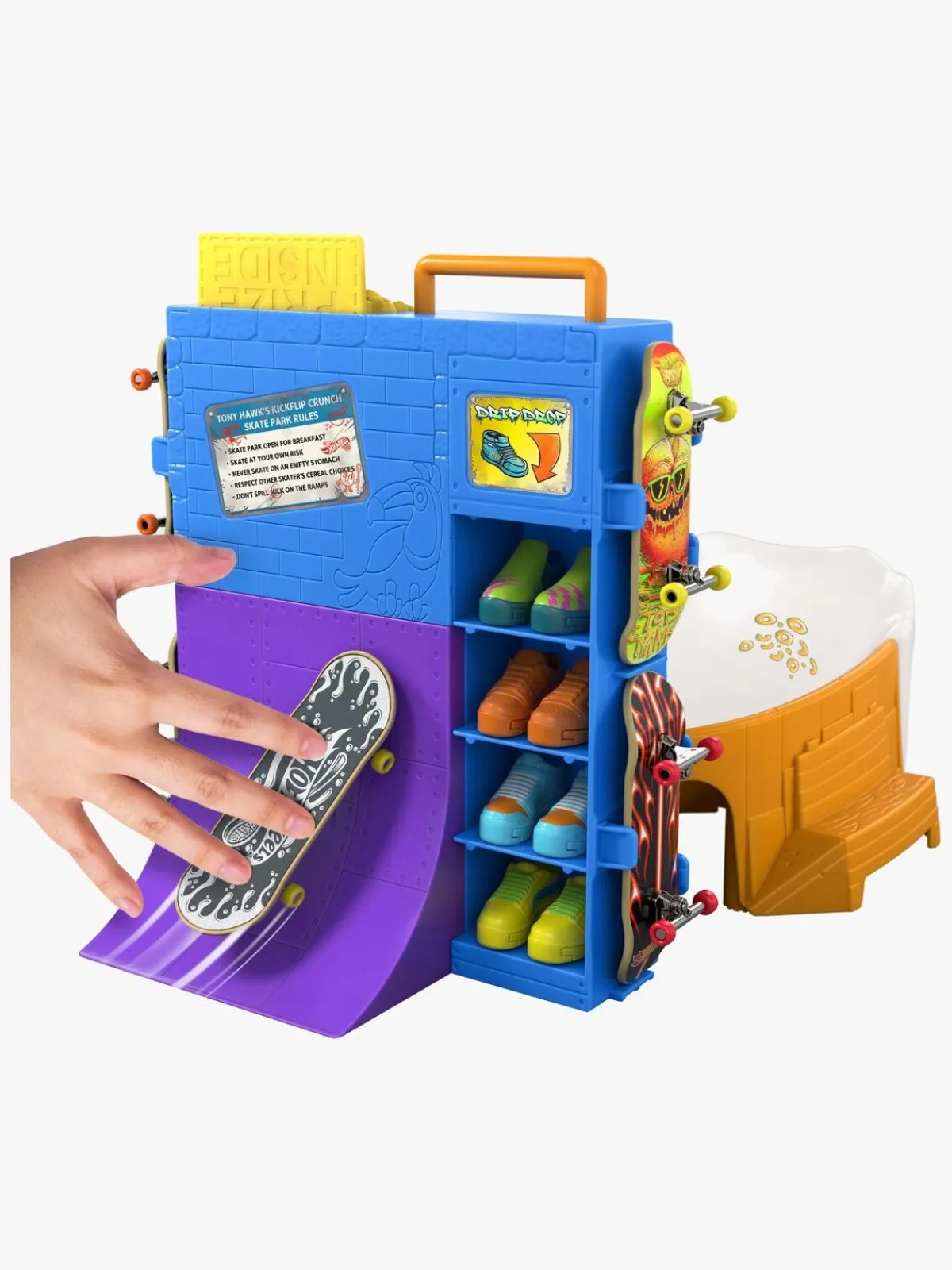 – Indeholder: 1 fingerskateboard, 1 fingerskateboard-rampe, 1 par sko.