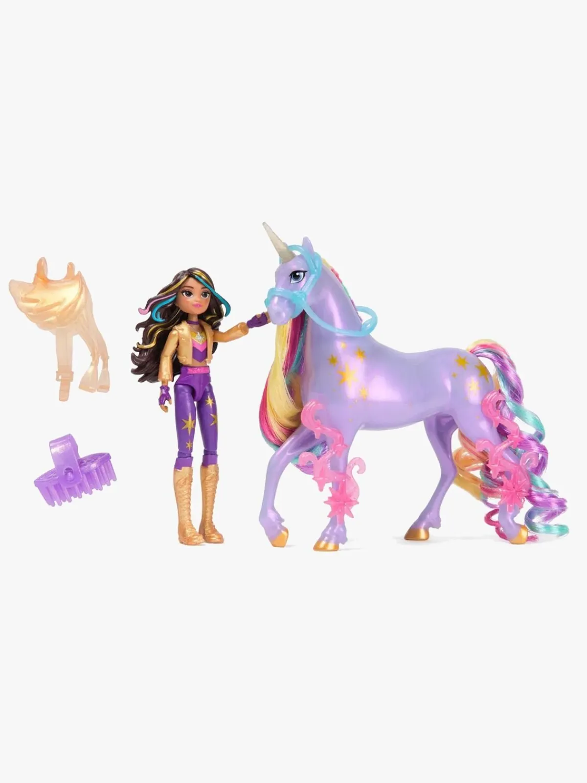 – Indeholder: 1 dukke, 1 enhjørning, 1 børste, 1 sadel, 1 hovedtøj.