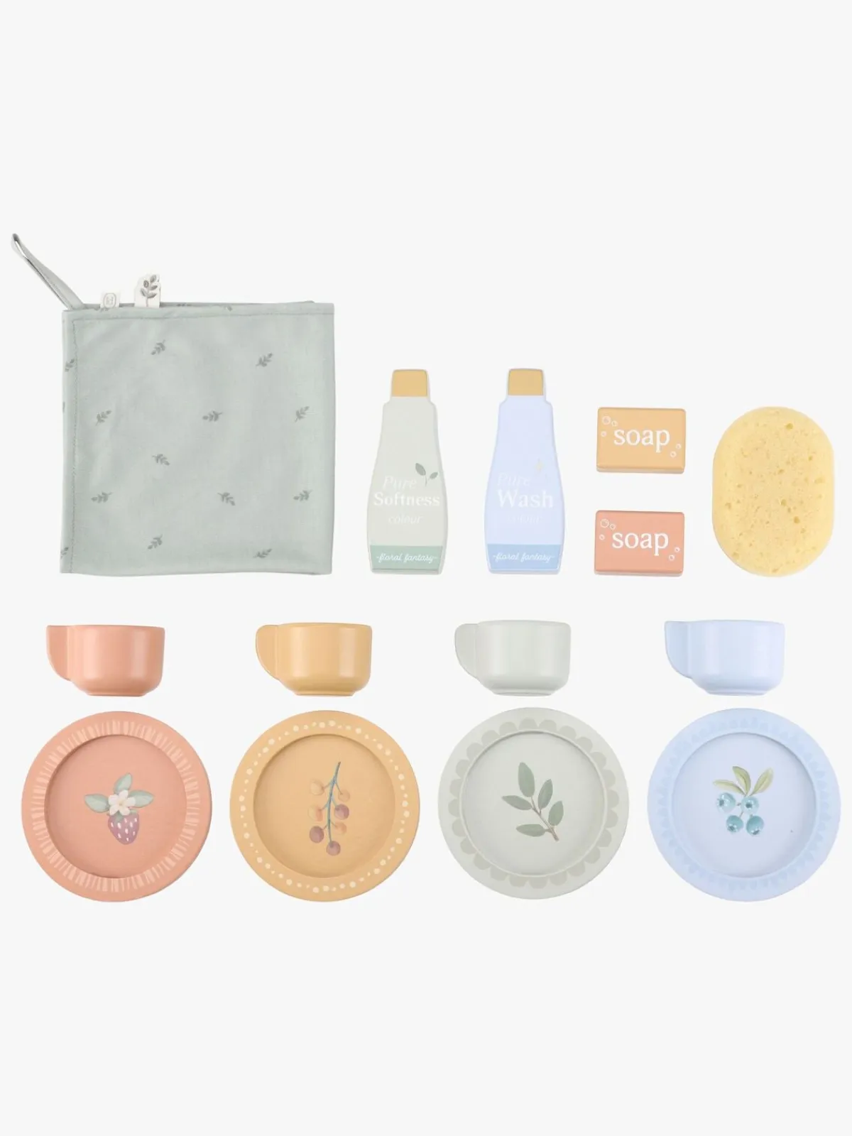 – Indeholder: 1 vaskemaskine, 4 tallerkener, 4 kopper, 1 håndklæde, 1 svamp, 4 sæber.