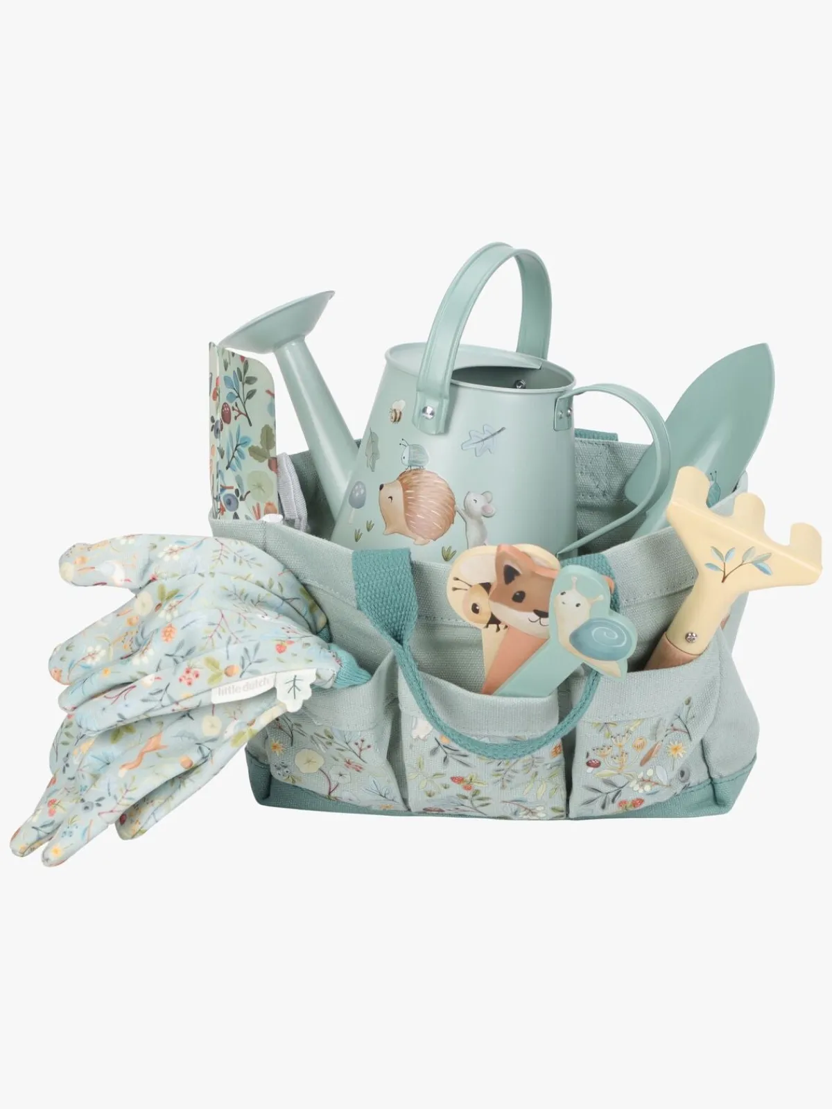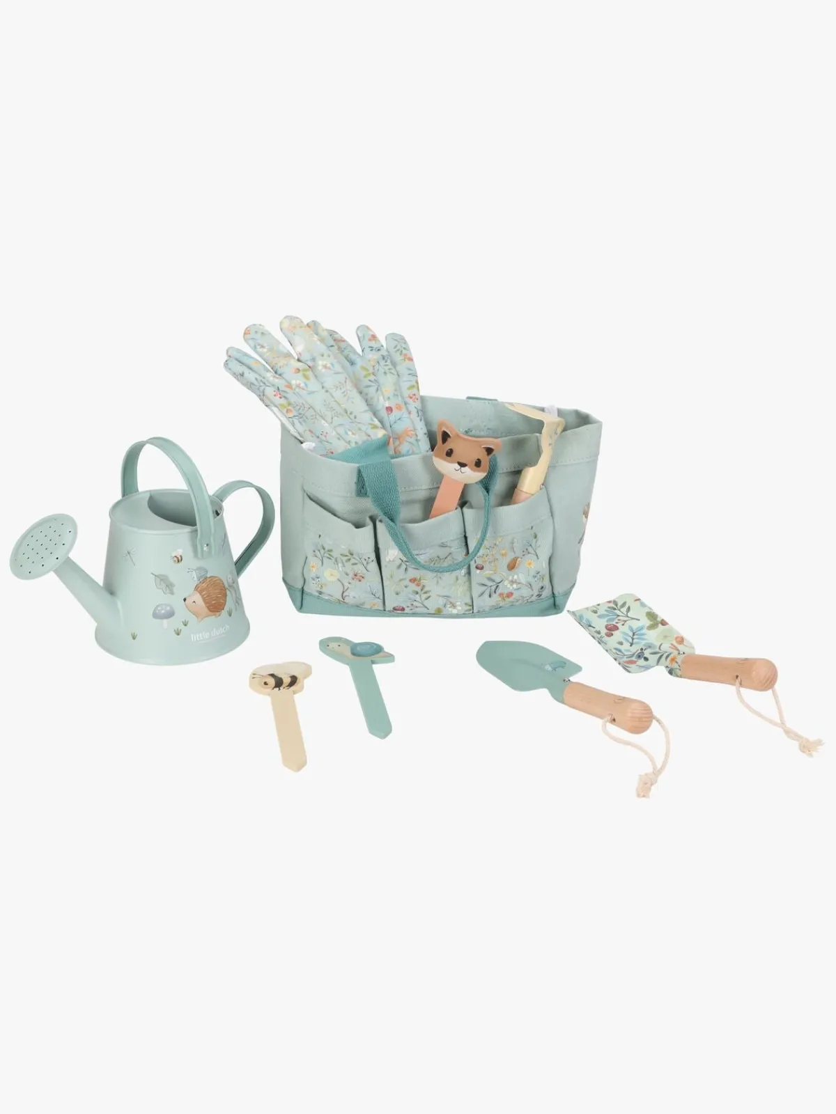 – Indeholder: 2 spader, 1 rive, 1 par handsker, 1 vandkande, 1 opbevaringstaske, 3 pinde.