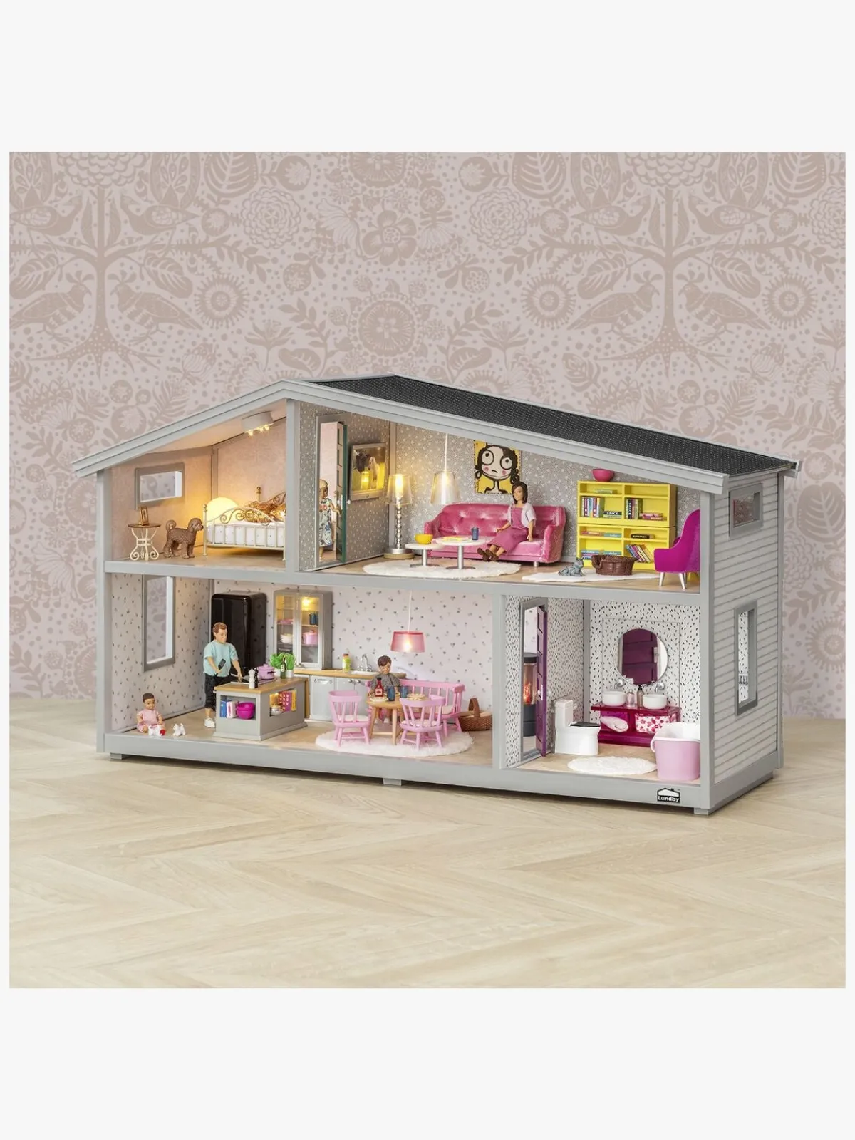 Dette dukkehus kan du designe, lige som du vil! Køb lamper og møbler fra Lundby for at gøre det endnu mere hyggeligt for dine beboere.